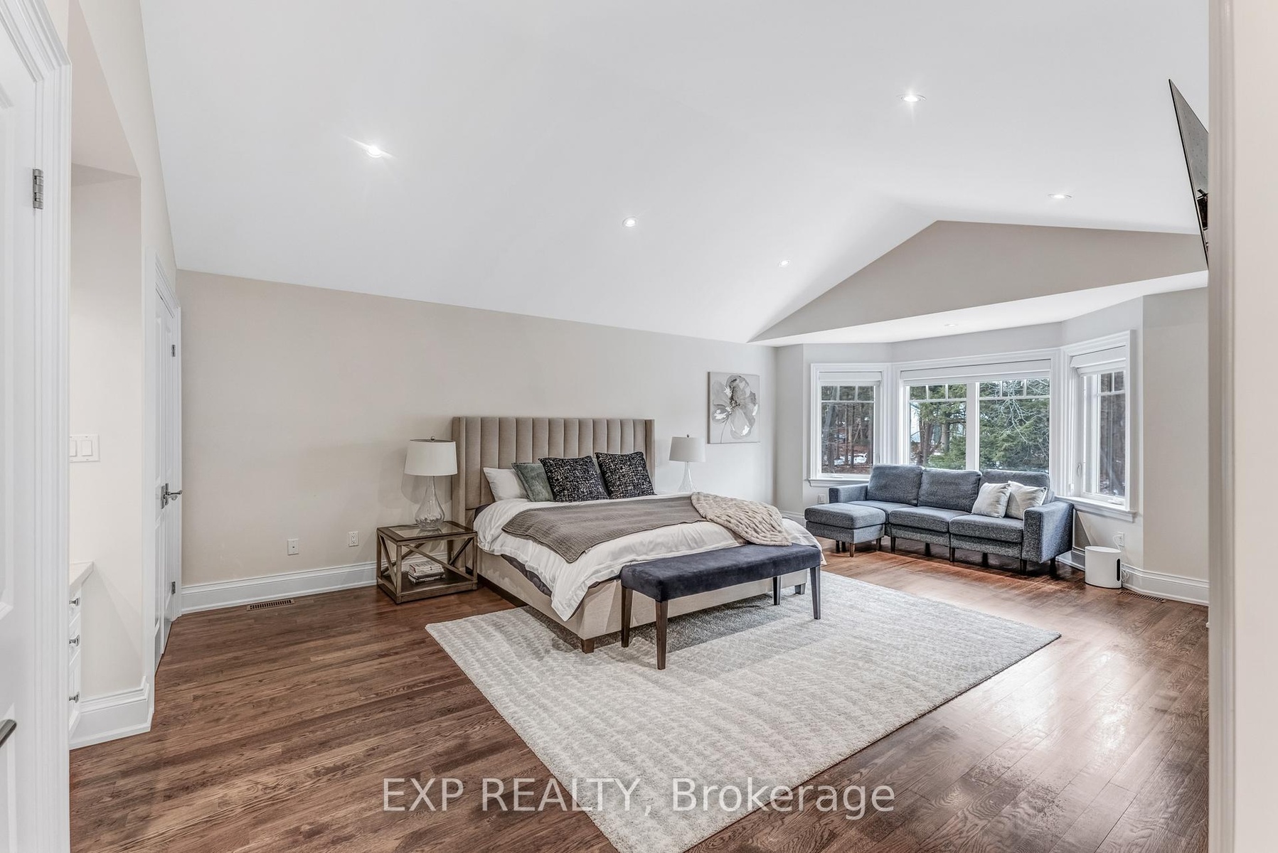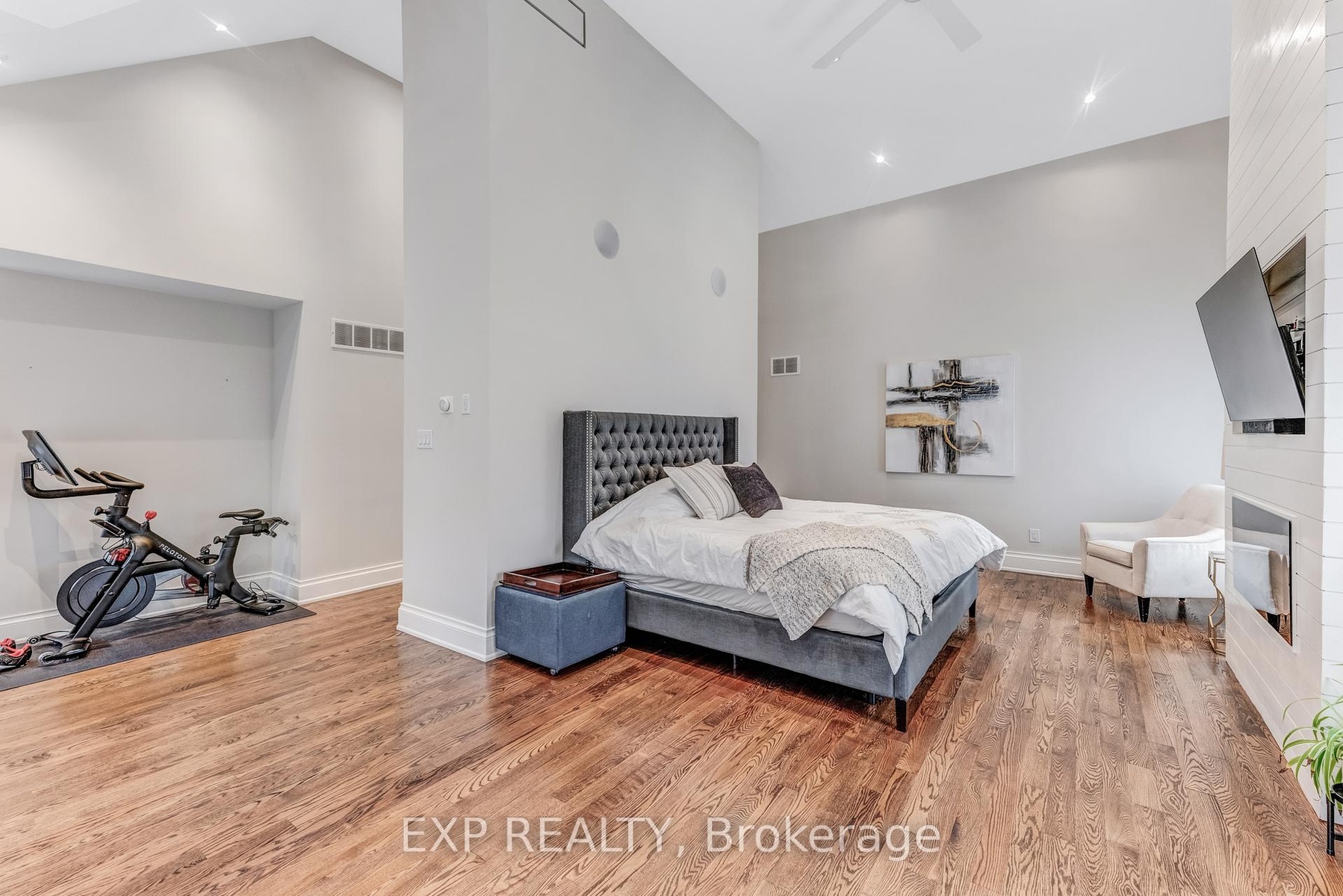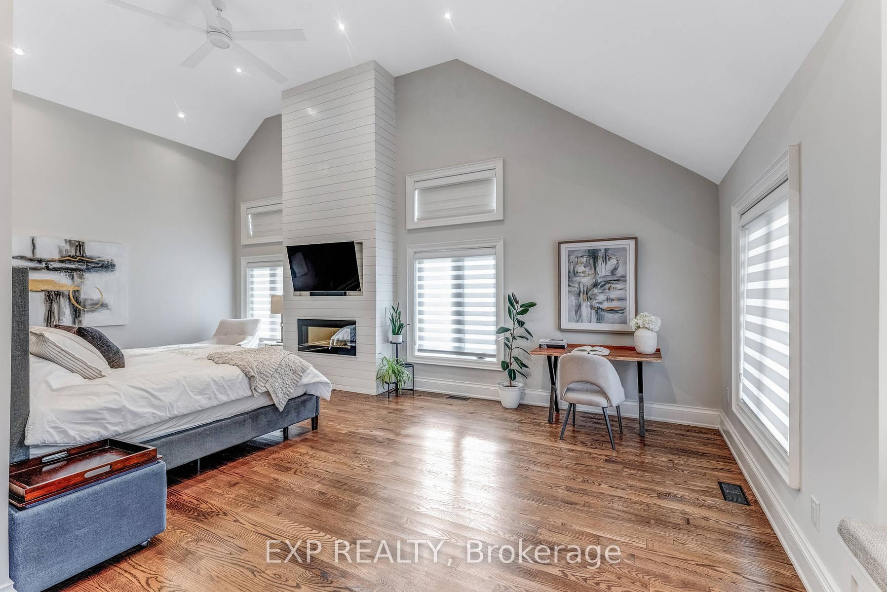 Nestled On Two Private, Treed Acres Within An Exclusive Cul-De-Sac Where Homes Are Rarely Available, This Sensational Custom Estate Presents An Unparalleled Lifestyle Of Privacy And Luxury. Experience Living At Its Finest Inside This Architecturally Striking Residence, Offering Over 6,000 Square Feet Above Grade With 10-Foot Ceilings On the Main Floor, Creating A Grand, Light-Filled, Open-Concept Ambience. A Spacious Custom Loft Provides Boundless Possibilities For Refined Living. A Masterpiece Of Craftsmanship, the Home Showcases Travertine And Hardwood Flooring Throughout, Accented By Five Fireplaces. The Gourmet Chef's Kitchen, Appointed w/ a Premium Wolf Range, Double Wall Oven & Marble Countertops, Flows Seamlessly Into An Inviting Family Room Adorned With Grand Custom Bookshelves. The Primary Suite Serves As A Serene Sanctuary, While Every Bedroom Features Its Own Ensuite For Exceptional Comfort And Privacy. The Walk-Out Lower Level Adds Another 2,500+ Square Feet Of Additional Living, Highlighted By A Bespoke Entertainment Lounge With Custom Bar And Cabinetry, A Sleek Wall-Insert Fireplace, and a Professional Home Gym. Exterior Excellence Continues With Professional Landscaping, An Irrigation System, And A Year-Round 20' Swim Spa Complete With Motorized Covana Cover. State-Of-The-Art Geothermal Heating And Radiant In-Floor Heating On Both Main And Lower Levels Ensure Sustainable Efficiency. Additional Distinctions Include A Generac Backup Generator, 10 Camera HD Security System, 400 Amp Service, (2) EV Chargers, And Fibre Optic As Well As Starlink High-Speed Internet. This Exceptional Two-Acre Estate Is Also Fully Permitted For A Future Sport Court (Pickleball, Hockey, etc.) An Extraordinary Fusion Of Sustainable Innovation, Sophisticated Design, And Tranquil Natural Surroundings; A Truly Rare Offering. See Feature Sheet for Additional Highlights.