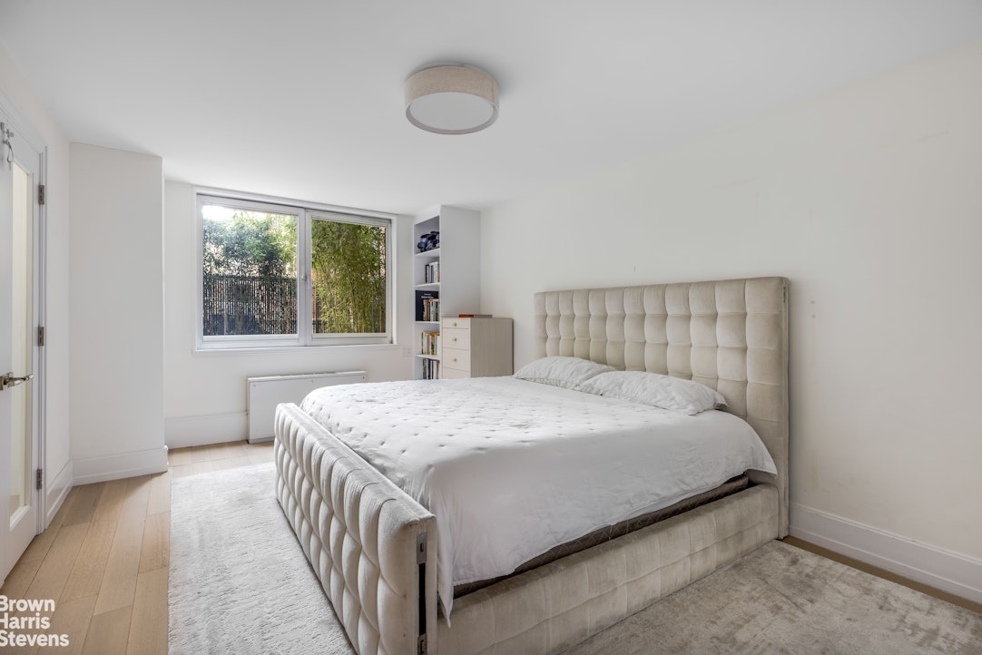 The layout is ideal, with East and West exposure, and 2 bedrooms on each wing with 3.5 baths, all convenient to the bedrooms and guests. The primary bedroom is massive, again with peaceful garden views and its own private office. Two of the bathrooms have radiant, heated floors, so does the kitchen, and there is a separate laundry room with a vented washer and dryer - all brand new. Throughout the apartment, you will find wide white oak hardwood floors, an enormous amount of closet space, and very attractive over-head lighting and sconces.