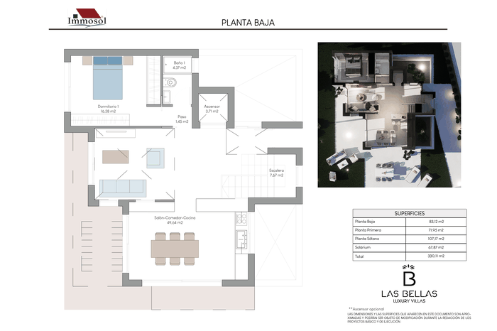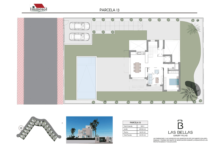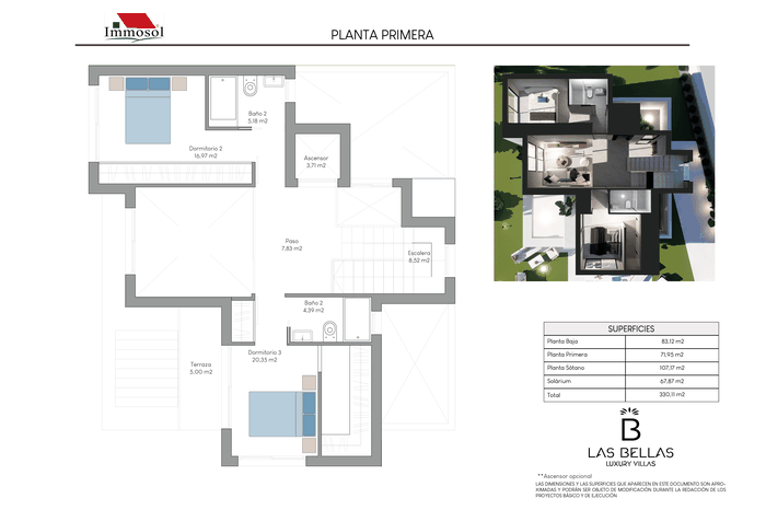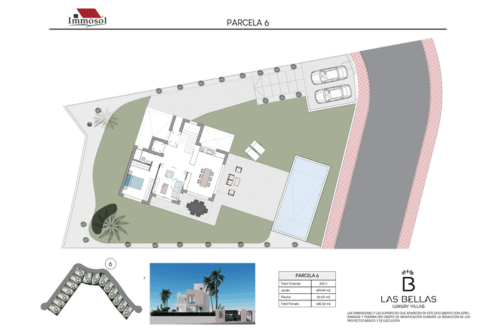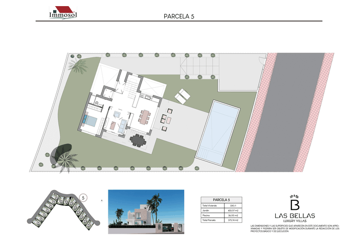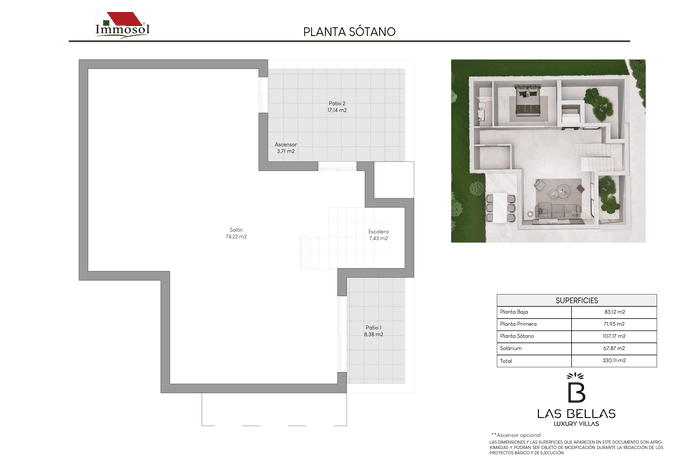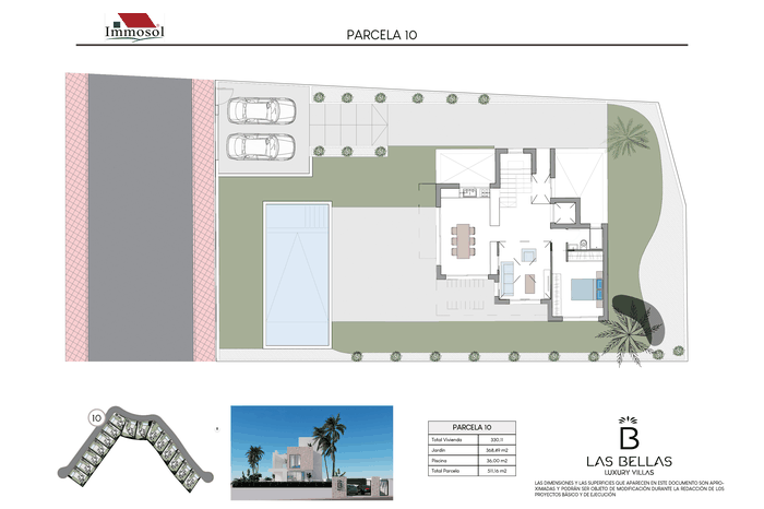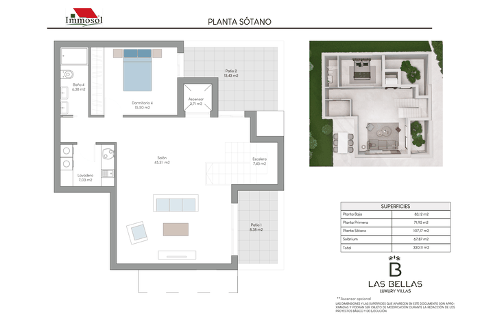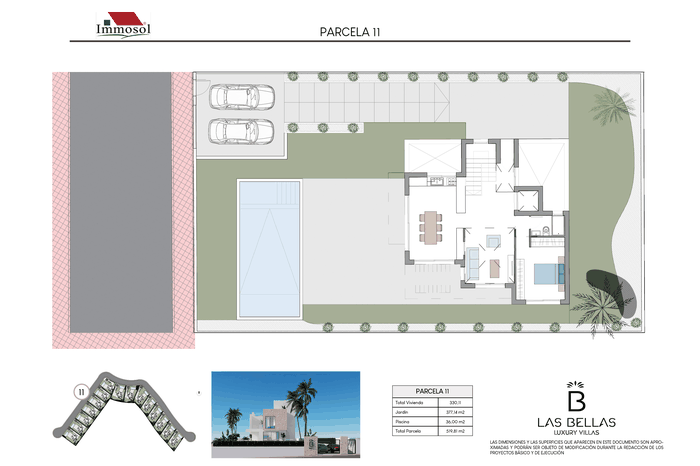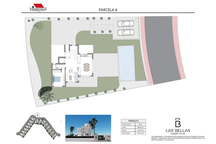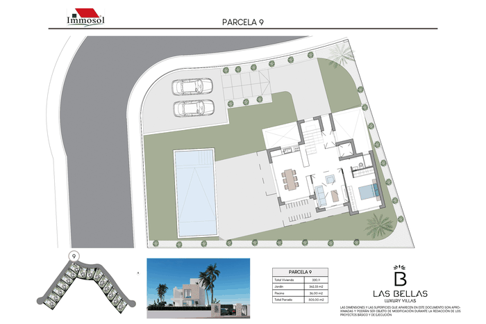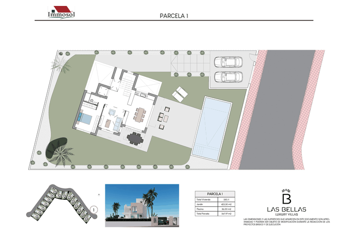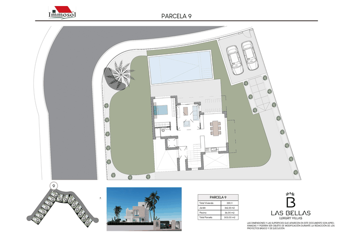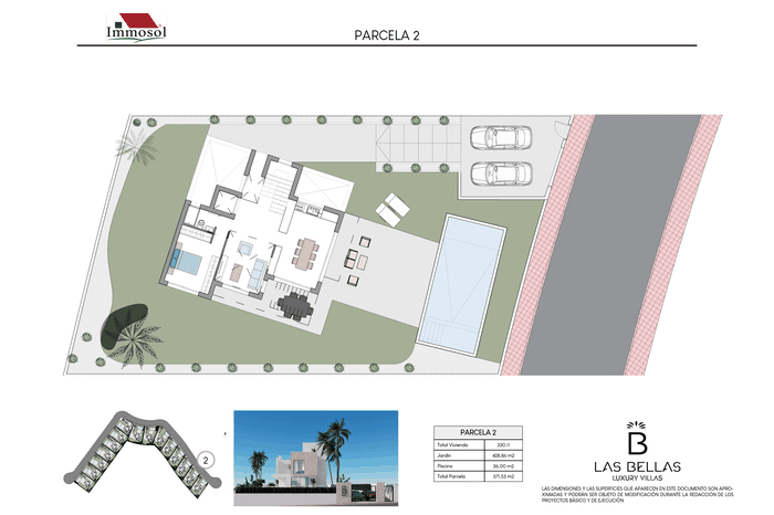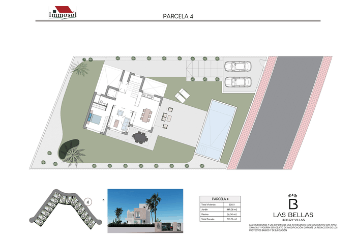 All the Villas have independent access by car and on foot, private parking, a 34 square meter private pool and a solarium of more than 67.87 m2. With plots of more than 520 m2, 3-4 bedrooms, 3-4 bathrooms and a basement of more than 107 m2. The Villas have a basement (it can be open plan or personalized), ground floor, upper floor and solarium. They have the possibility of an interior elevator with panoramic views, pre-installation of a charging station for an electric vehicle, home automation throughout the house and a jacuzzi. In addition, the price also includes underfloor heating in bathrooms and aerothermal energy.