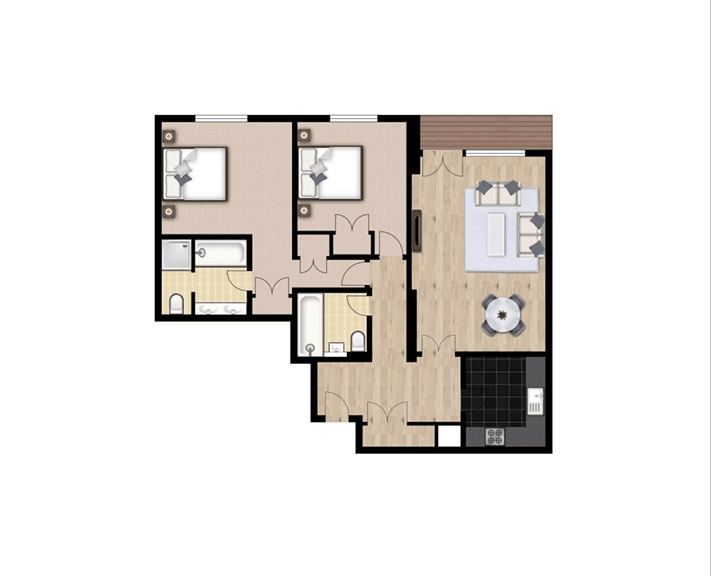 • Two bedrooms, two beautifully finished bathrooms