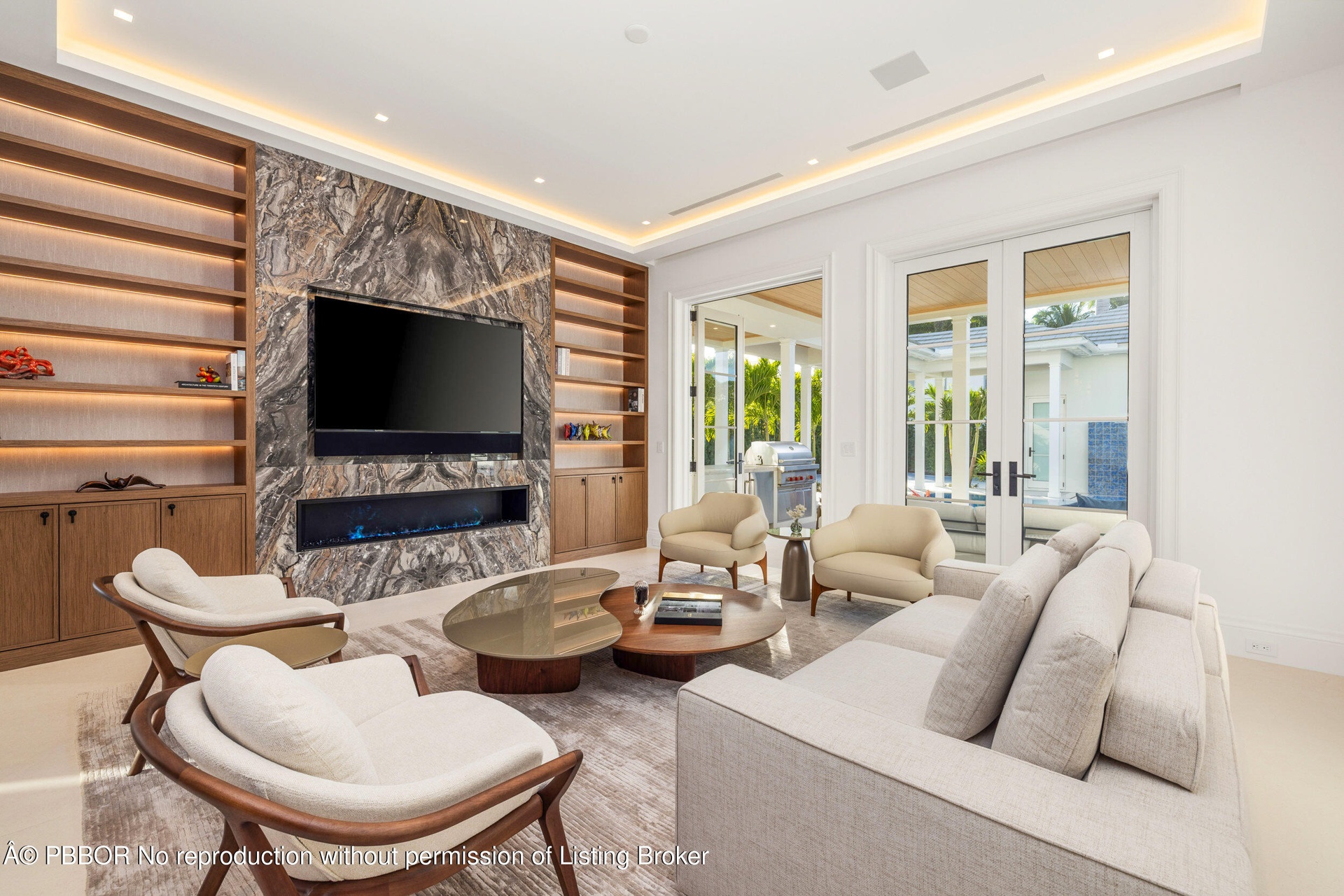 Outdoor living is at the forefront with a Euro-edge pool, cabana, covered loggia, and a complete summer kitchenideal for entertaining. The cabana also functions as a separate guest house, creating additional options for visitors or long-term stays.