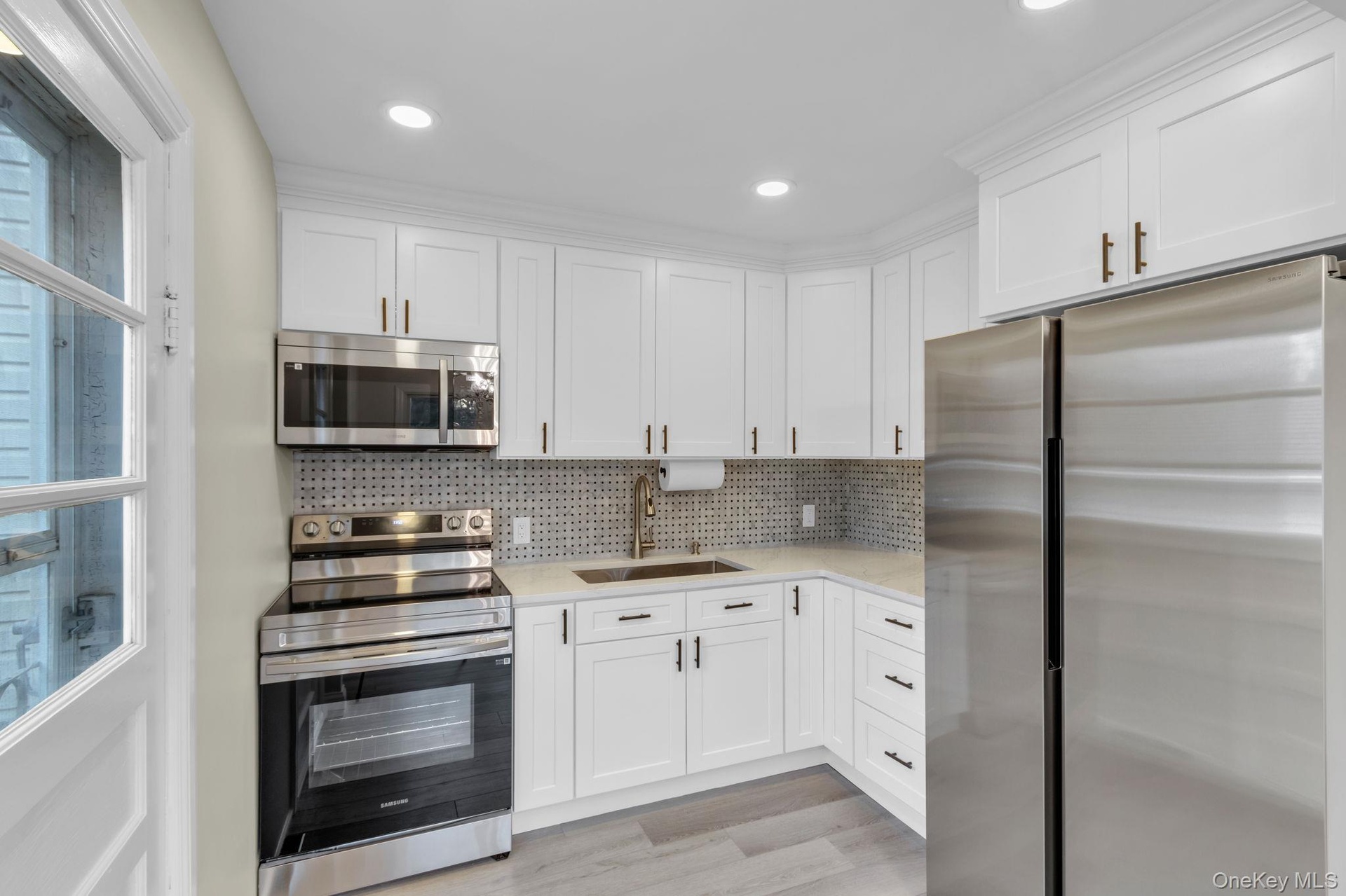 The main level features a bright and open living space with fresh flooring, updated lighting, and a seamless flow into the renovated kitchen. Here you’ll find sleek countertops, contemporary cabinetry, and an efficient layout perfect for cooking, dining, and entertaining. Every detail has been curated to create a comfortable and visually appealing environment.