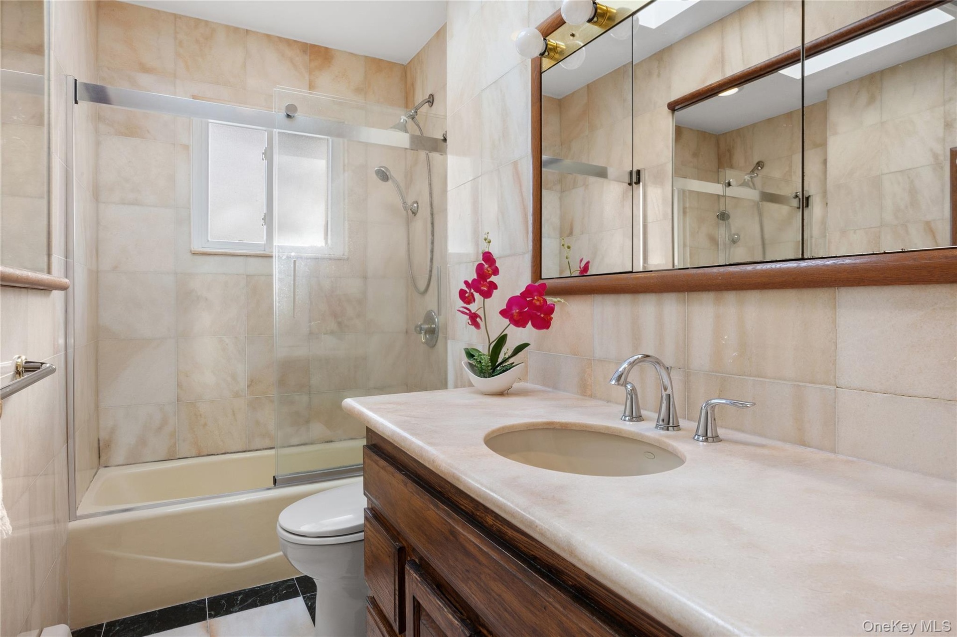 Upstairs, The Oversized Primary Suite Features A Remodeled Luxury Bath W/ Jacuzzi, Porcelanosa Tile, Skylight & Updated Walk-In Closets. Three Additional Generously Sized Bedrooms Share A Beautifully Renovated Full Bath, Providing Comfortable Living For Family Or Guests.