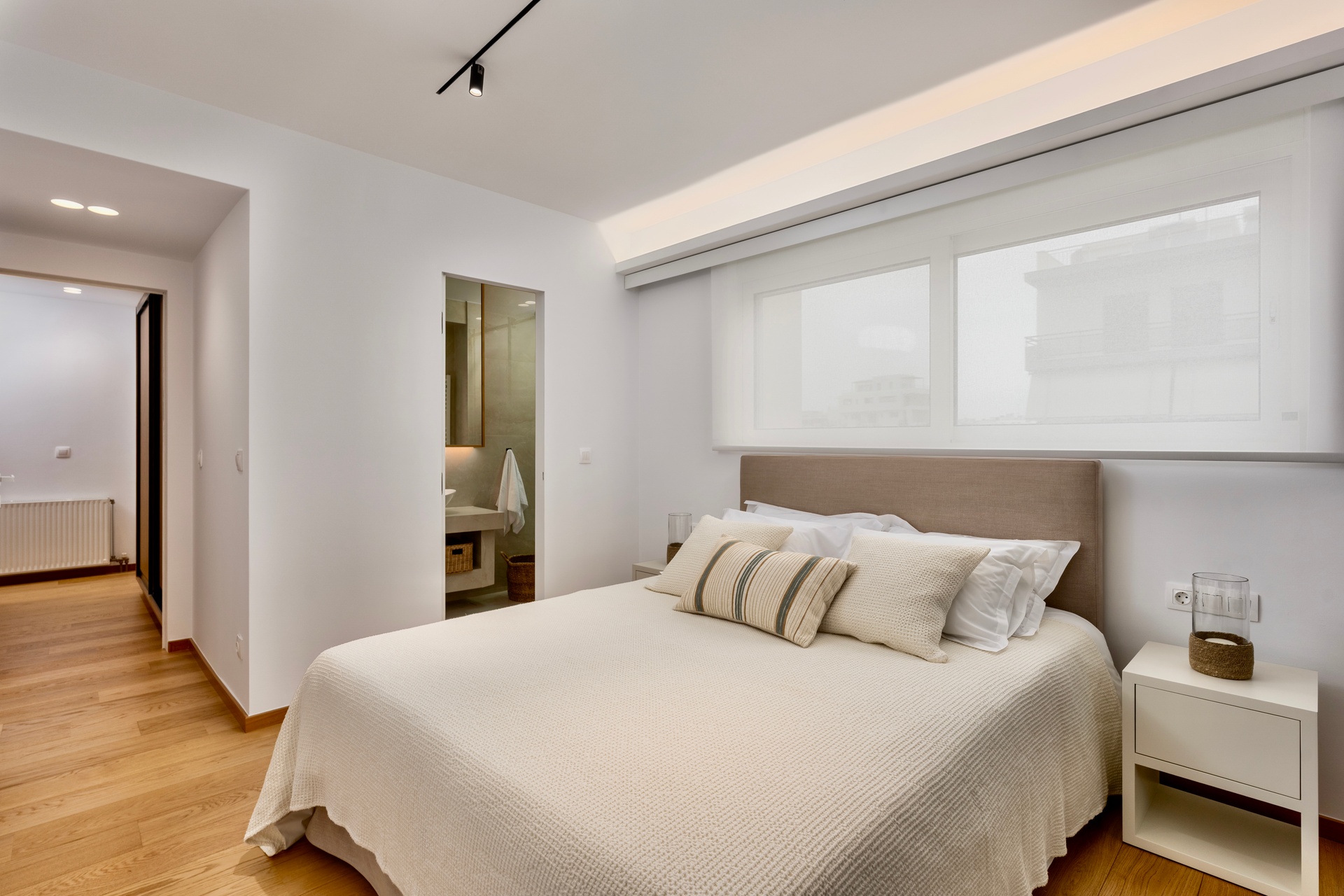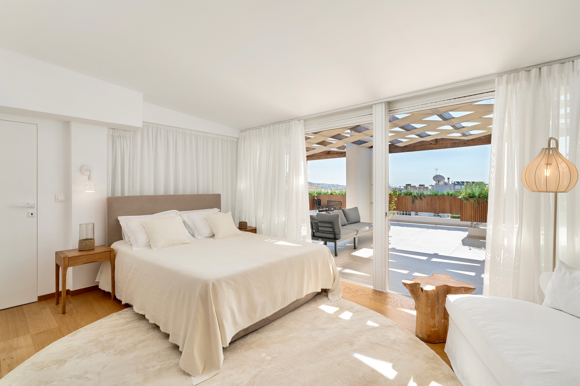 A refined internal staircase leads to the upper floor, where you will find a third master suite, a thoughtfully arranged home office and direct access to the rooftop terrace, a stunning lookout for panoramic sunsets over Glyfada Golf, Kavouri and the Saronic Gulf.