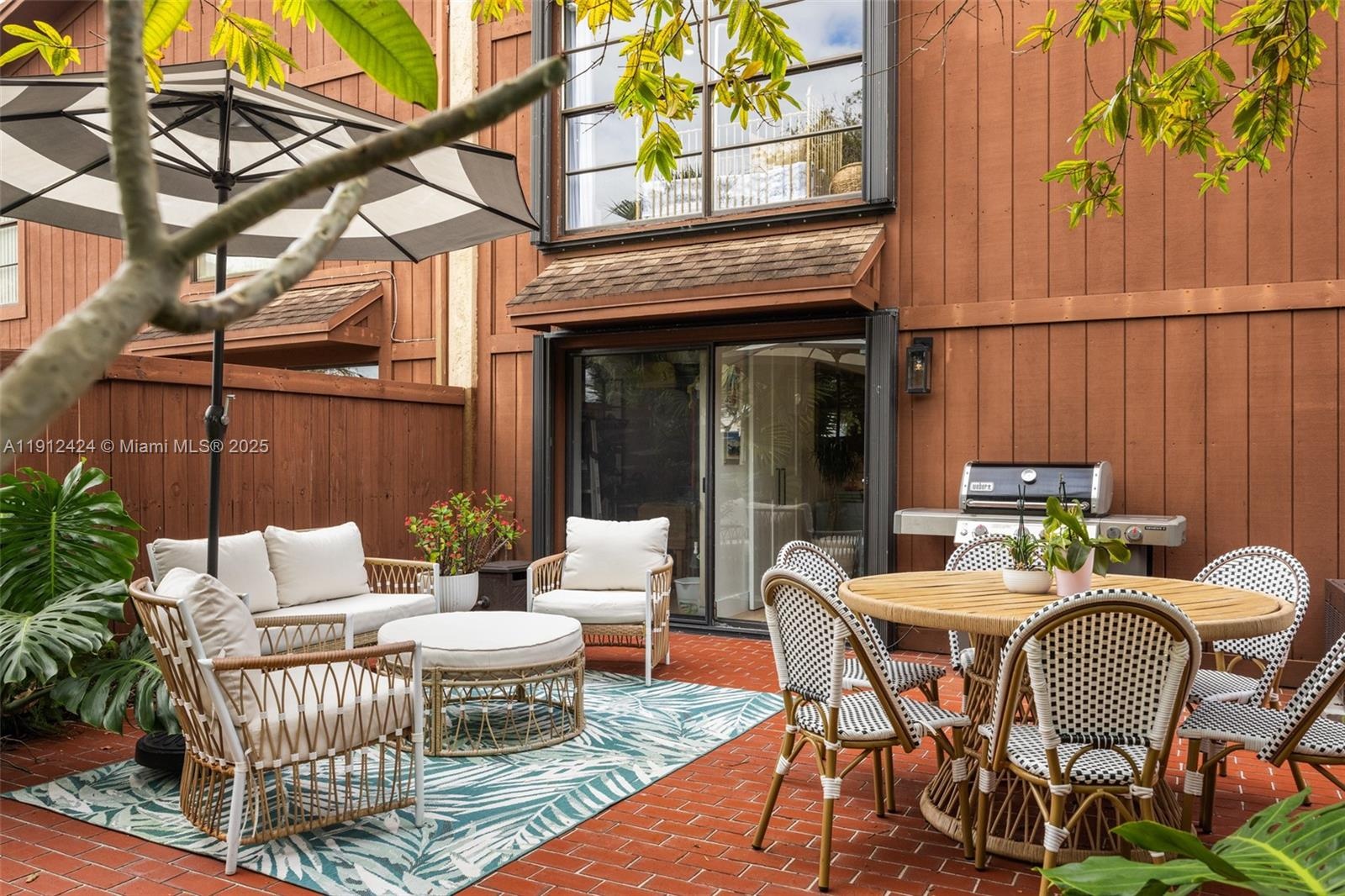 Beautifully remodeled and thoughtfully curated, this 3BD, 2.5BA townhouse in gated Snapper Village offers warm, modern living with a spacious indoor–outdoor feel. The main level features wood floors, recessed lighting, and a sleek kitchen with custom cabinetry, built-in pantry, and a charming dining area with a full-length bench. The bright living room opens to a lush, fenced backyard designed for relaxing and entertaining. Upstairs, all bedrooms include built-out closets and warm, refined finishes. A front courtyard, dedicated storage room, and a serene, landscaped setting further elevate this home. The community offers resort-style amenities including a pool, tennis courts, playground, and 24-hour security, with an HOA that covers exterior maintenance, cable, internet, water, and more.