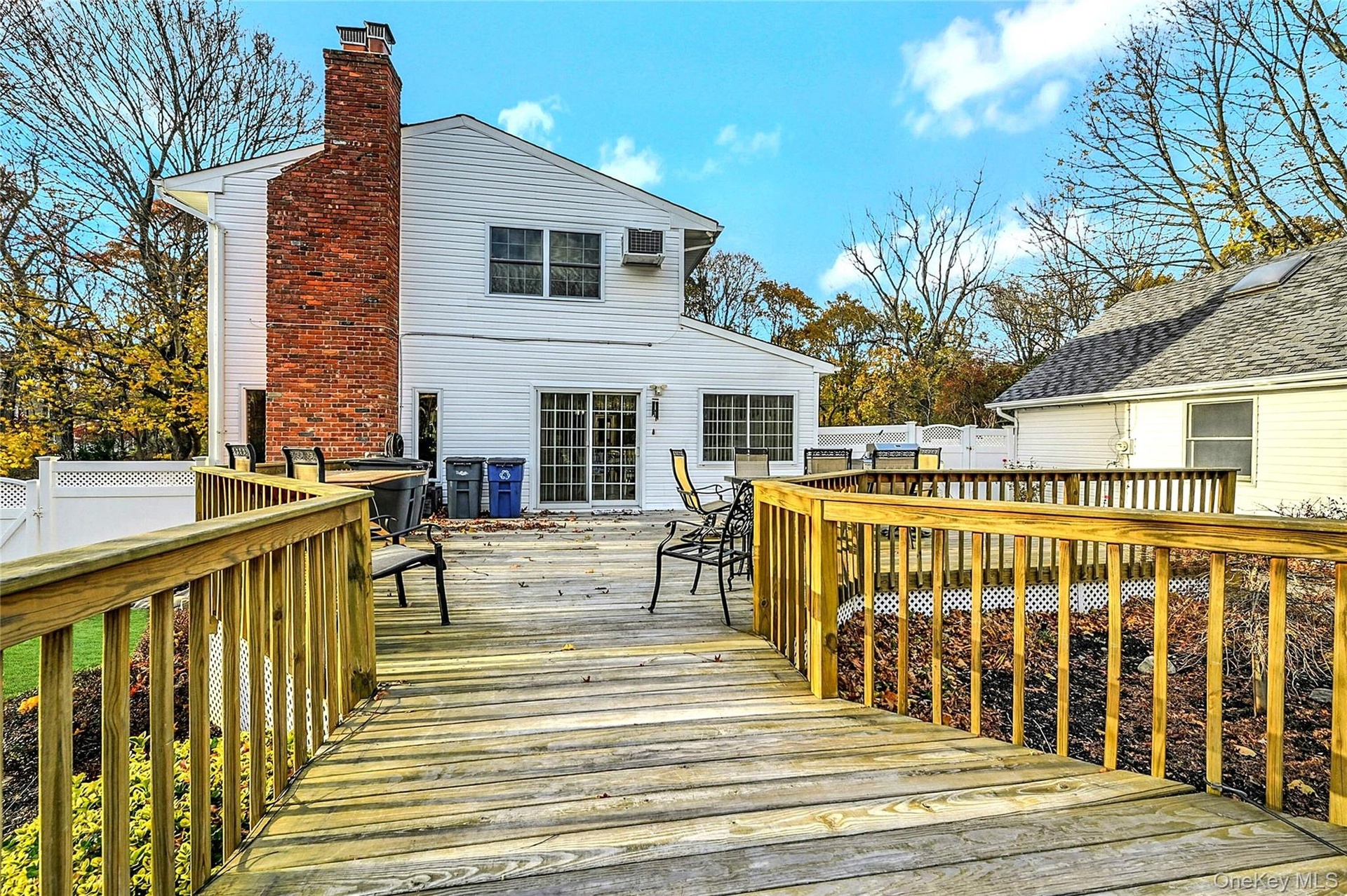 This house has over 2,700 square feet of living space! Beautiful Colonial with updated Kitchen and Bathrooms in the Mount Sinai School District. Bright eat-in Kitchen, Den w/Fireplace, light-filled sunroom, spacious primary suite and large yard with semi-inground pool and deck are just some of the features to love in this four Bedroom two and a half Bath home. The 2-Car Detached Garage has endless possibilities. The expansive and open floor plan of the kitchen provides easy access to the deck and pool area, making year-round entertaining convenient for all. With laundry room and half bath on the main floor, it’s easy to handle the swimsuits and towels in the summer. The staircase to the second floor is tucked away and leads to Primary Suite with fireplace, cathedral ceiling, many windows, en-suite bathroom with walk-in shower with two vanities, three more generous bedrooms and a hall bath. The house has a covered front porch, ample closets, partial basement, 200 electrical service, in ground sprinklers, PVC fencing and driveway parking for 6+cars.