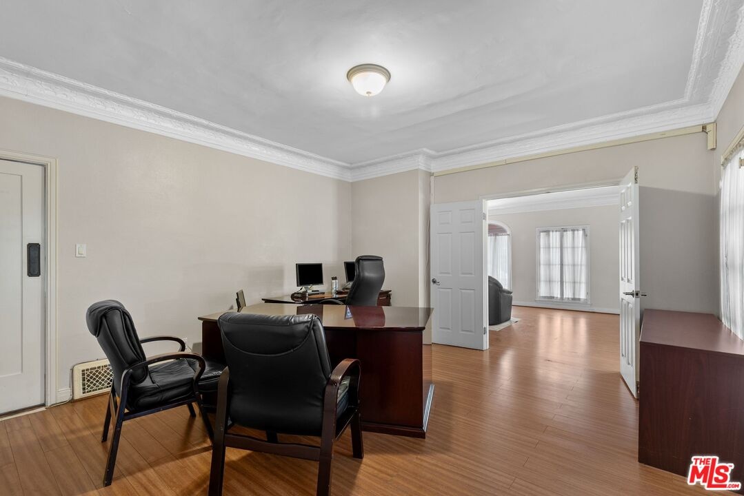 Fantastic opportunity to own a fully vacant 4-unit income property in the heart of Wilshire Park - an ideal location for strong rental demand and long-term growth. Surrounded by some of L.A.'s most desirable neighborhoods, this property sits just minutes from Hancock Park, Larchmont Village, Mid-Wilshire, Koreatown, and Hollywood, offering quick access to top dining, shopping, transit, and major employment hubs. The main residence is a spacious 5-bedroom manor plus a den, perfect for an owner-user, high-value rental, or a business/office setup. With an oversized kitchen, formal dining room, living room, laundry room, generous bedrooms, and dual staircases, the layout provides exceptional flexibility and multiple use options. In addition, two updated 1-bedroom units in the rear structure offer immediate rental income potential at market rates. There is also another studio. The property features private garages (ideal for added income or ADU potential, buyer to verify), plus ample gated parking throughout the lot. Mature trees, a gated yard, and multiple private outdoor areas add extra appeal for tenants and future development possibilities. A rare chance to acquire a centrally located, fully vacant property with strong income upside in a high-demand rental market! Many upgrades!