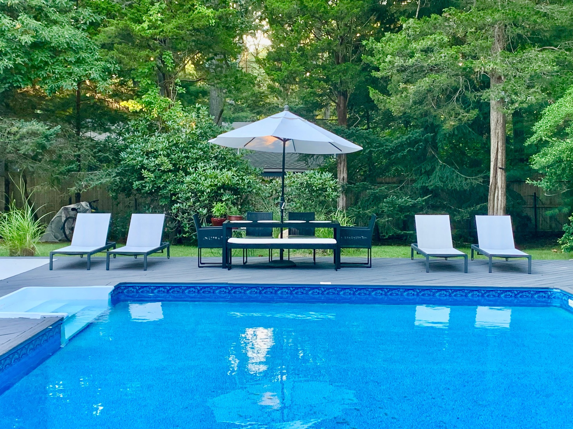 Nestled in the peaceful Clearwater community on a serene street, this sun-drenched beach cottage offers an ideal summer getaway. Featuring a single-story layout with central air conditioning, it boasts a generous living room, dining area, and a kitchen that leads to a lovely back deck. There are 4 bedrooms and 2 full baths to accommodate your stay. Outside, you'll find a spacious patio perfect for alfresco dining and barbecues, alongside a 20x40 pool and a grassy area for outdoor games and fun. Guests will enjoy access to the Clearwater Homeowners' private beach, and the property is just a short distance from bay beaches, delightful restaurants, and marinas.