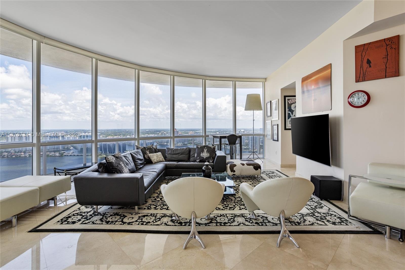 Experience elevated coastal living in this extraordinary PENTHOUSE boasting 3 bedrooms, 3.5 bathrooms, and a versatile den. Enjoy 180-degree panoramic views—ocean vistas to the southeast and direct Intracoastal views to the northwest—all showcased through dramatic floor-to-ceiling windows. A private elevator welcomes you into 2,236 sq. ft. of refined interiors featuring marble flooring and a spacious family room. The gourmet kitchen w/ wet bar is perfect for entertaining. Private beachfront cabana at Trump Int'L, also available for sale. Enjoy Trump Palace amenities along w/ full access to Trump Royale & Trump Int’l: Beach, multiple pools, full-service spa, gym, tennis, valet, and concierge. A truly rare offering—privacy, elegance, and resort-style living in the heart of Sunny Isles.