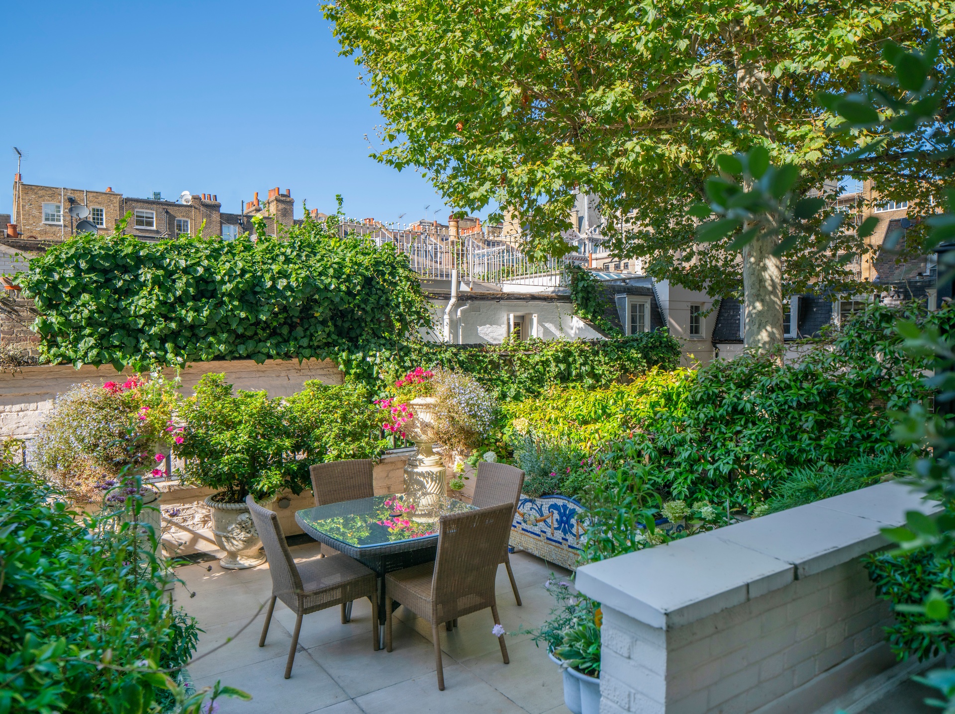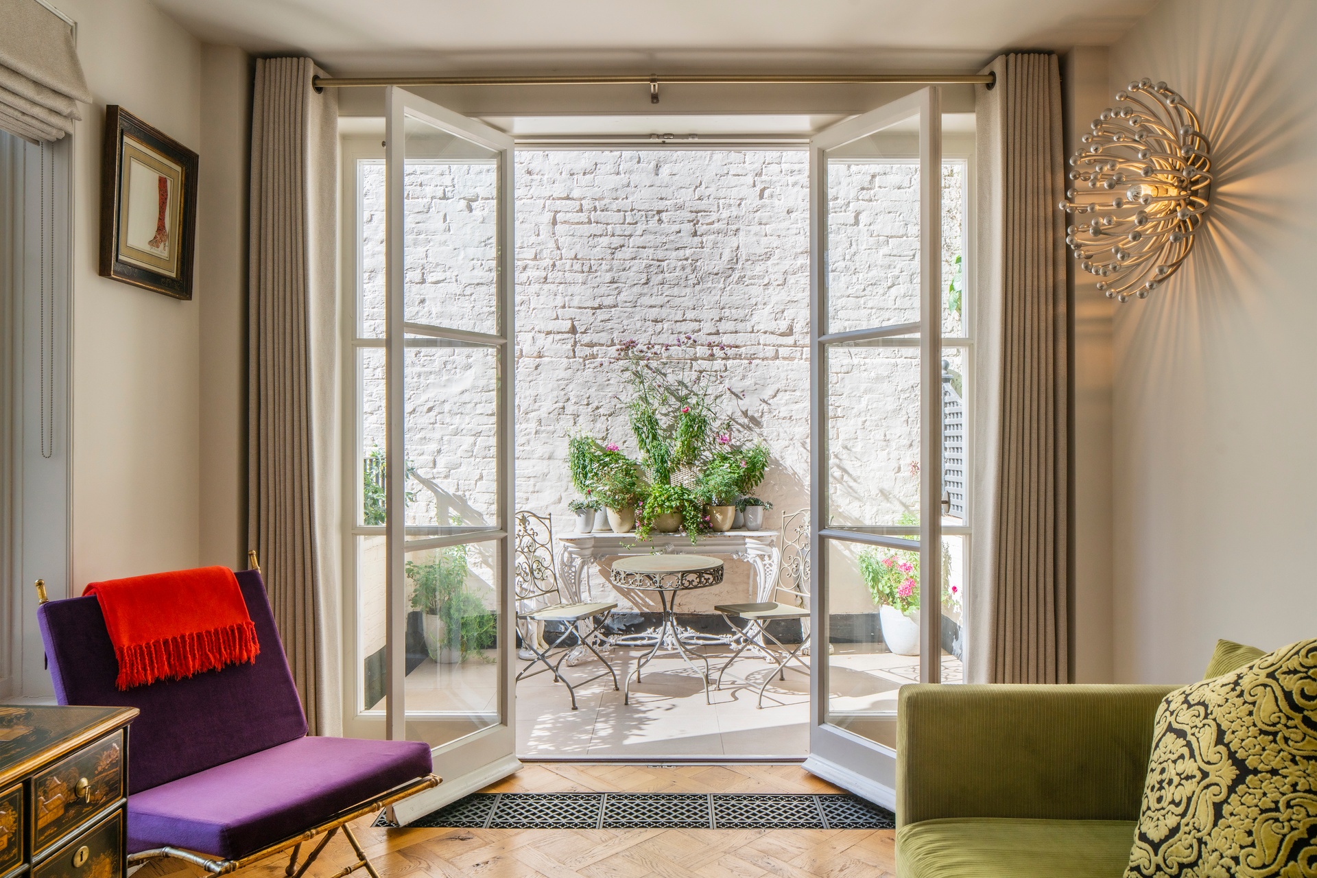 Exceptionally designed by renowned British townplanner Thomas Cubitt, famed for his work on Buckingham Palace's East Wing, this late-Georgian architectural masterpiece showcases soaring double-height ceilings and dual-aspect drawing rooms, perfect for entertaining. The ground floor's expansive drawing room and the first floor's formal reception and dining areas open onto a charming terrace, blending indoor and outdoor living. The lower ground floor offers an eat-in kitchen and a further sitting room, giving onto a verdant patio, complemented by an ensuite bedroom ideal for staff accommodation. Each of the three upper-level ensuite bedrooms offers absolute privacy, with the palatial principal suite boasting a walk-through wardrobe that leads on to the bathroom.