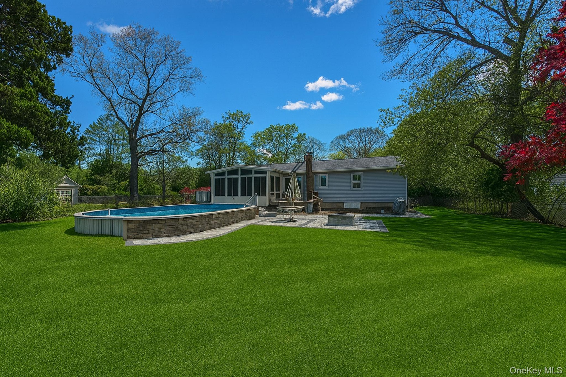 Welcome home to 59 Westfield Rd. This beautifully maintained 3-bedroom, 2-bath ranch offers the perfect combination of comfort, updates, and incredible property features—set on a quiet residential street with great privacy and space to enjoy. Step inside to find a bright and inviting living area with recessed lighting and updated flooring. The spacious eat-in kitchen features ample cabinetry, stainless steel appliances, a large center island, and an open layout ideal for everyday living and entertaining. The primary bedroom includes a connected full bath, fully renovated with modern tilework, sleek fixtures, and a sliding glass shower door. Two additional bedrooms offer comfortable space for guests, or home office use. The home also features a full finished basement with an outside entrance, providing the perfect setup for extended living space, a recreation room, guest quarters, or accessory apartment with the proper permits. Step outside to your own backyard resort—complete with a semi–in-ground pool surrounded by paver patios, a spacious sunroom, and a beautifully landscaped, fully fenced property. Whether relaxing poolside, hosting summer gatherings, or enjoying the privacy and greenery, this yard is truly designed for year-round enjoyment. Additional highlights include a 1-car garage, updated driveway, low-maintenance vinyl siding, and a peaceful setting while still being close to shopping, parks, schools, and major roadways as well as low taxes just over $8k with the STAR credit. Do not miss this home!
