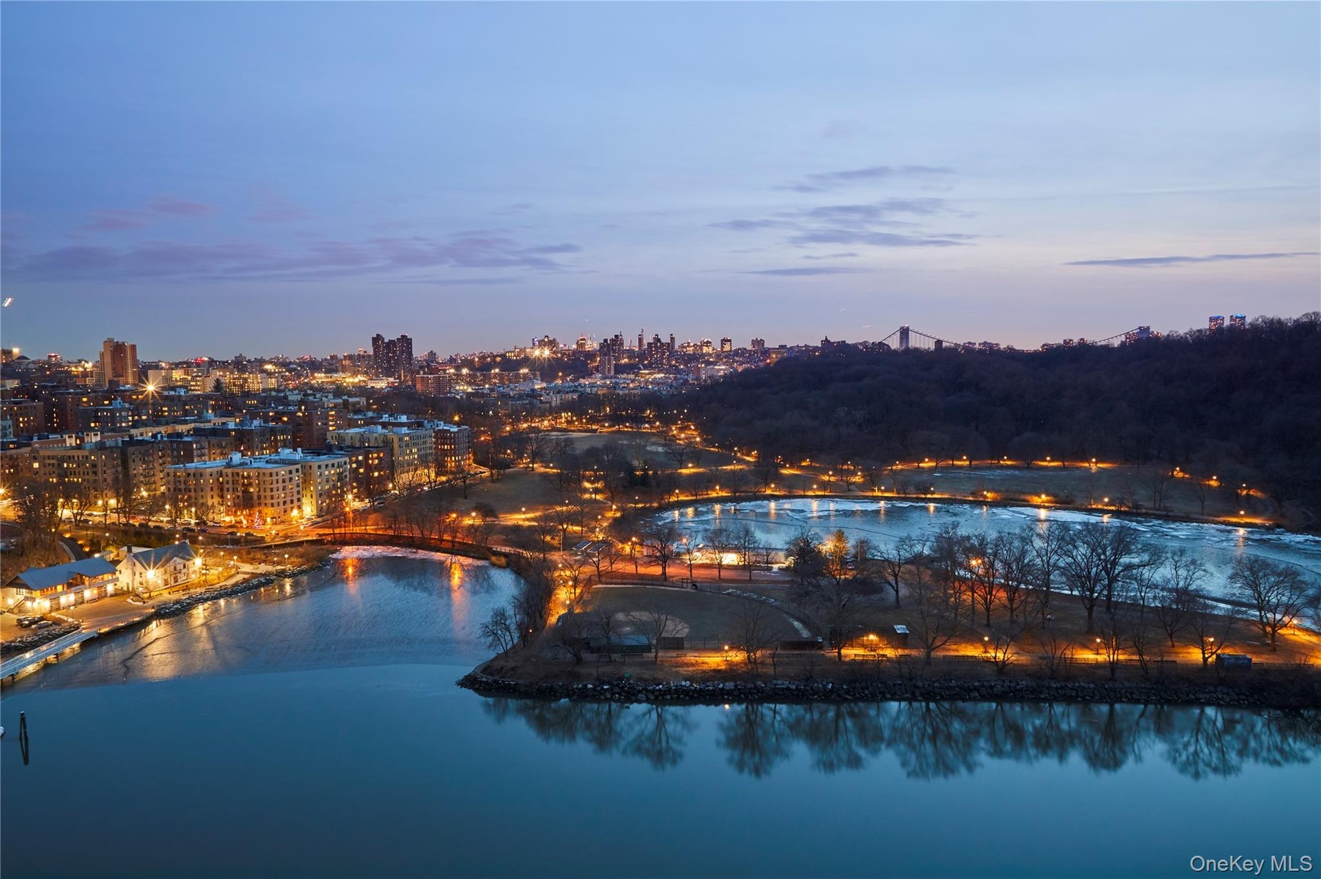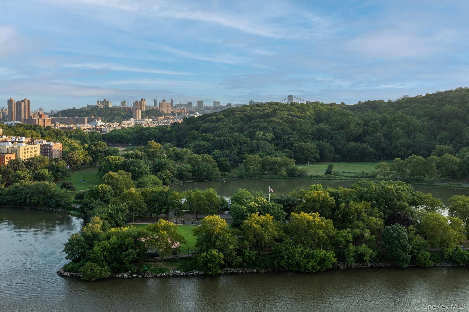 Immerse yourself in spectacular river views from every window of this south- and east-facing corner two-bedroom, two-bath apartment, complete with a private terrace. Located in the highly distinctive Blue Building at 2400 Johnson Avenue, this residence features an L-shaped living and dining area where expansive windows flood the space with natural light. Enjoy breathtaking views of Inwood Park, the Hudson River, the East River, and the Palisades. Sip a glass of wine as you soak in the stunning sunsets and the captivating NYC skyline as evening falls.