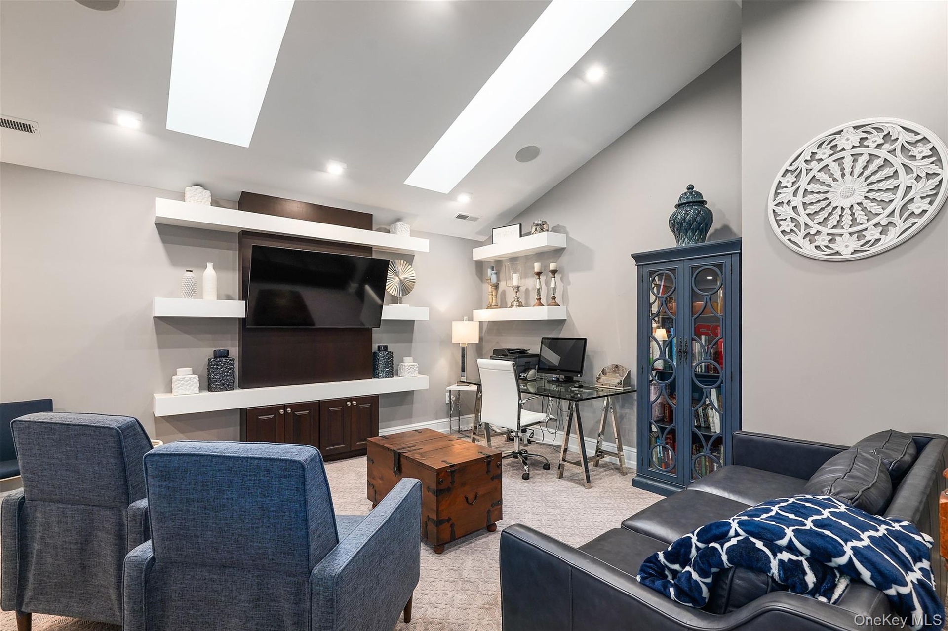 Upon Entering 4 Goldman Court, You Are Greeted By A Large Entry Foyer & Dining Room Which Flows Effortlessly Into The Chef's Kitchen Boasting Stainless Steel Appliances & Elegant Granite Countertops With Floor To Ceiling Cabinetry. The Vaulted Living Room, With A Beautiful Gas Fireplace, Creates An Open & Inviting Atmosphere Ideal For Life & Social Interactions. The Convenient Main Level Primary Bedroom Suite, Half Bathroom And Laundry Room Round Out The First Floor. The Upper Level Boasts A Bedroom, A Spacious Office With Gorgeous Built-Ins, A Full Bath And An Ample Den With Vaulted Ceilings And Skylights!! The Finished Basement Is Like A Separate Apartment On It's Own, Making The Space Perfect For Multigenerational Living. Complete With A Bedroom, Full Bathroom, Kitchen, 2nd Laundry Room And Living Room Making It Perfect For Anyone. The Thoughtful Layout Of The Home Ensures That Every Square Foot Is Utilized Efficiently, Providing Ample Space For Relaxation & Entertainment.