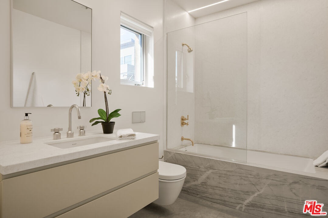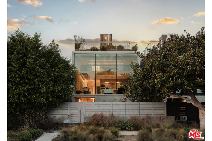 Nestled in the most coveted enclave of Venice, just a few blocks from the Pacific Ocean and Abbot Kinney, 533 Grand Boulevard is a five-year opus by award-winning architects Nicholas Hopson, AIA and Klara Rodstrom. No expense was spared in this residence of monastic precision and understated grandeur, refined with finishes sourced from across the globe. Entry is through a dramatically recessed, extra-wide custom pivot door set deep within board-formed concrete. Inside, seamless, hand-troweled concrete floors, walls, and staircase are silently tempered by a state-of-the-art Messana hydronic radiant system that heats and cools objects before air, delivering draft-free comfort with exceptional efficiency. Golden California light floods the open living space through fourteen-foot frameless glass walls that vanish into the concrete for flawless minimalist lines. The living area flows effortlessly into a gallery-caliber kitchen appointed with bespoke Pedini cabinetry imported from Italy, Wolf and Sub-Zero appliances, MSG hardware, and dramatic full-height slabs of hand-selected granite. A fully integrated Sonos sound system and flush-recessed Lutron smart LED lighting, programmable scene by scene, allow mood and music to shift at a fingertip. Ascend by elevator or stair to the grand primary suite complete with his and her walk-in closets lined in Pedini millwork with integrated drawers and sleek LED illumination, and a spa-like bath anchored by a deep soaking tub and expansive steam shower. Crowning the residence is more than 1,500 square feet of rooftop living space thoughtfully divided into three distinct areas, a complete Wolf outdoor kitchen and dining pavilion, a raised fire-pit sundeck for sunset viewings, and a generous third terrace pre-wired and pre-plumbed for jacuzzi, garden, and solar, all framed by unobstructed 360-degree vistas from the ocean horizon to downtown Los Angeles. Sheathed in thermally modified wood siding with a 25-year warranty, this residence represents the rarest convergence of peerless location, refined craftsmanship, and timeless design on the Westside, an exacting masterpiece for the most discerning buyer.