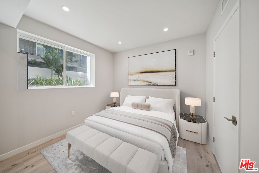 Stylish corner condo with private patios in a new luxury building in prime Pico-Robertson! Residence 102 offers 2 bedrooms and 2.5 baths of modern sophistication. Designed with privacy in mind, this sun-filled home features high ceilings, minimal common walls, and contemporary finishes throughout. The open-concept kitchen showcases European-style cabinetry, quartz countertops, a professional-grade appliance suite with five-burner cooktop, double oven, and a sleek double-basin sink. The spacious primary suite boasts a walk-in closet with custom built-ins and a spa-inspired bath adorned with quartz finishes, porcelain tile, and Delta fixtures. Two additional bedrooms offer flexibility for guests or a home office. Smart-home upgrades include Nest thermostat, in-unit LG washer/dryer, and smart wiring. Wide-plank modern flooring completes the look. Residence 102 includes tandem parking in a secure garage and is part of an exclusive 19-unit corner collection. Located near Beverly Hills, Century City, and the 10 Freeway. Tenant pays gas, electric, and trash. Water included. Pets OK. Available now. The rent price $4,616 is the net rent of a 13-month lease, including one month free. The lease monthly rent is $5,000. Advertised rent is net pricing of the unit when factoring in rent concessions over the lease term.