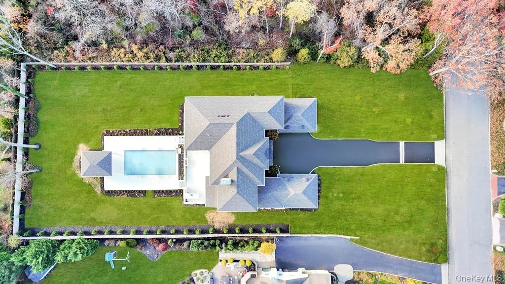 Welcome to this majestic mansion—an extraordinary, one-of-a-kind 9,500 sq. ft. custom estate in Dix Hills. This remarkable 7-bedroom, 6.5-bath residence offers approximately 8,300 sq. ft. of meticulously crafted interior living space, situated on a flat 1-acre lot just minutes from the Northern State Parkway. The exterior showcases timeless elegance with a full-size Glen-Gery brick facade, Andersen windows, architectural stone trim, and an oversized 3-car garage equipped with fully automated Hörmann doors. Inside, you’ll find soaring 10-foot ceilings, a stunning 22-foot great room bathed in natural light, custom coffered ceilings, wainscoting, and high-end European and Dubai-inspired finishes throughout. The chef’s kitchen is masterfully designed with Viking appliances, a walk-in butler’s pantry, and a state-of-the-art laundry room. The luxurious primary suite features a private balcony overlooking the pool, a spa-inspired bath with a steam walk-in shower, a freestanding soaking tub, and an expansive custom walk-in closet. The fully finished walk-out basement enhances the home’s appeal with a gym, flex room, additional bedroom, full bath, kitchenette, and an 11.4 Dolby Atmos theater for an immersive entertainment experience. Step outside to a resort-style backyard designed by a licensed landscape architect. This outdoor oasis includes a sunken patio, custom outdoor kitchen, 20’ x 40’ gunite pool with salt system, spa, four sheer descents, automatic cover, imported natural stone decking, and a stylish pool cabana. Fully automated and future-proof, this estate features integrated smart-home systems controlling lighting, climate, pool, garage, and appliances—offering unmatched comfort, convenience, and sophistication. With its timeless craftsmanship, modern amenities, and resort-quality outdoor living, this Colonial masterpiece is a rare offering in Dix Hills. Don’t miss the opportunity to make it your next home!