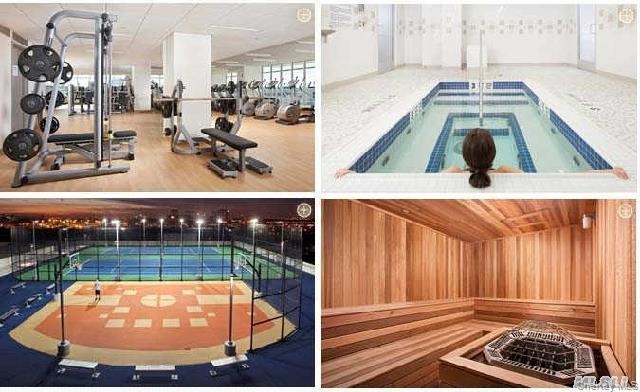 Spacious High floor bay facing unit at Skyview with spectacular views of the city and bridges. Sun drenched 2Br 2Ba Unit At Skyview Parc Luxury Condo Complex In Heart Of Flushing. Over 1100 sqft net. Large Sound Insulating Windows, 9 Ft Ceiling, walk in Closets, Ss Appliances, Open Kitchen, Granite Ctop, Wshr/Dryer In Unit, 24Hr Gym, Swimming Pool, Tennis Crt, Basketball Crt, Dog Run, Sauna, Steam Room, Play Grounds, Lounge, Bbq, Etc.