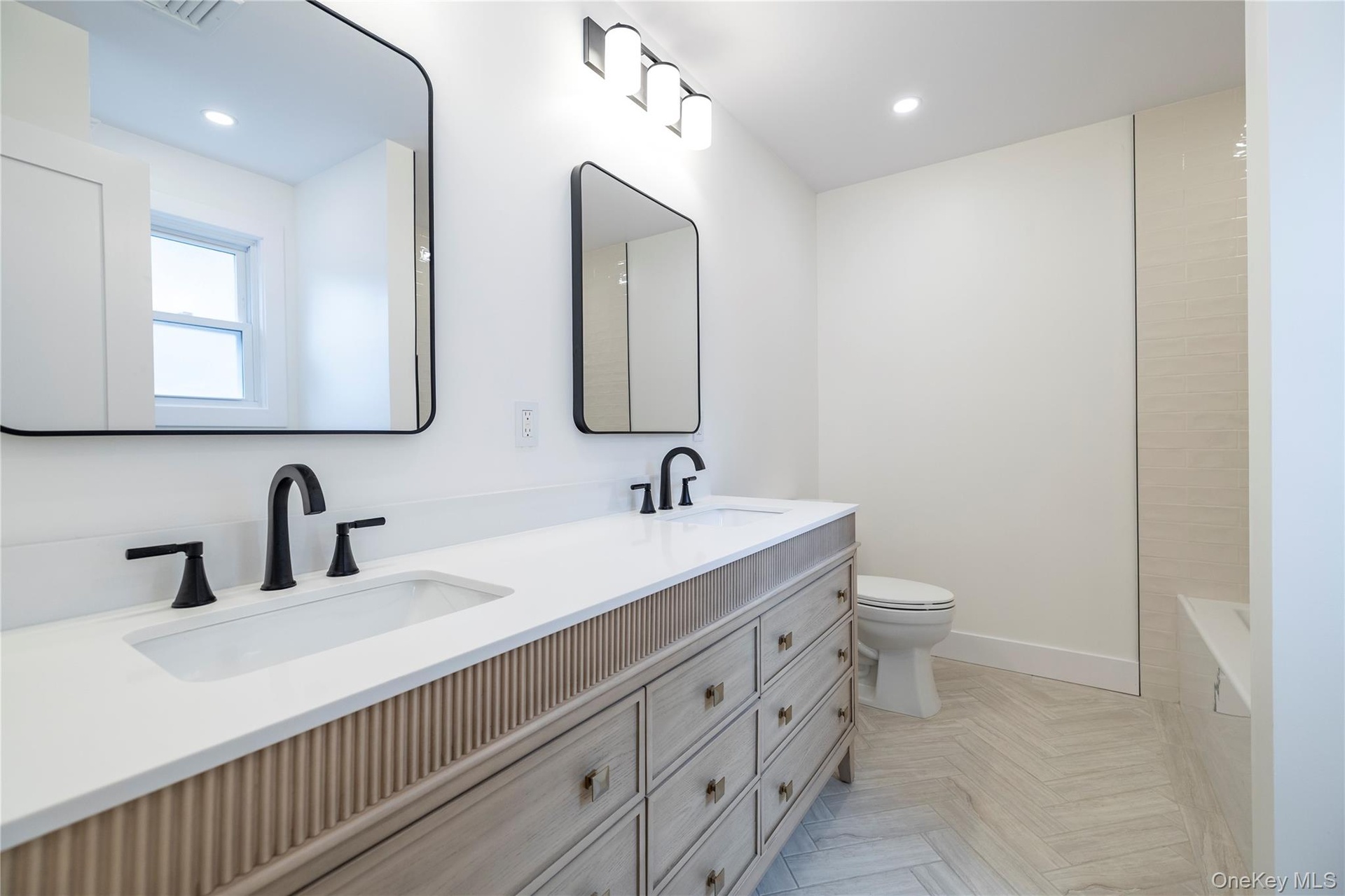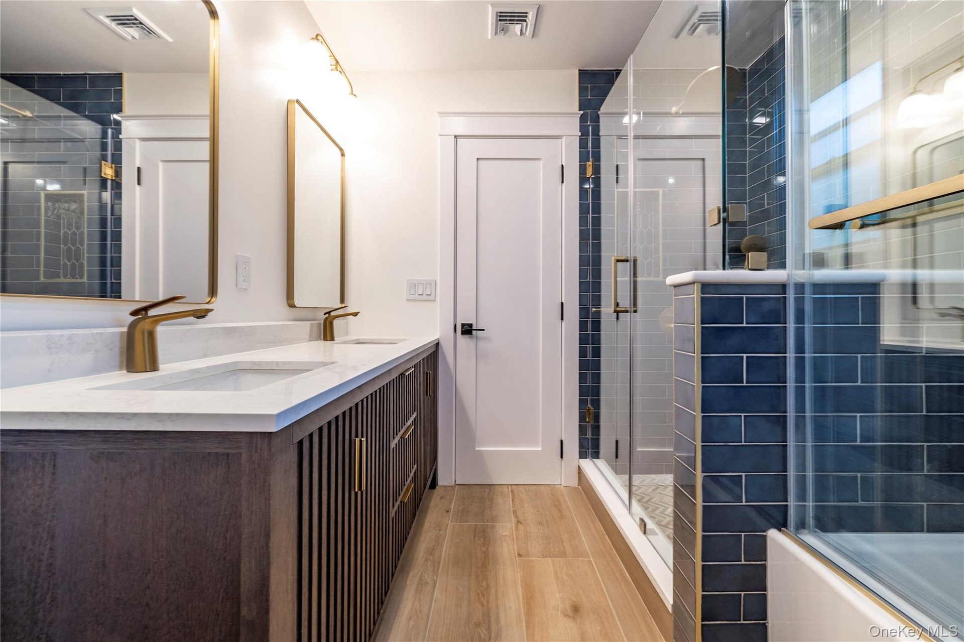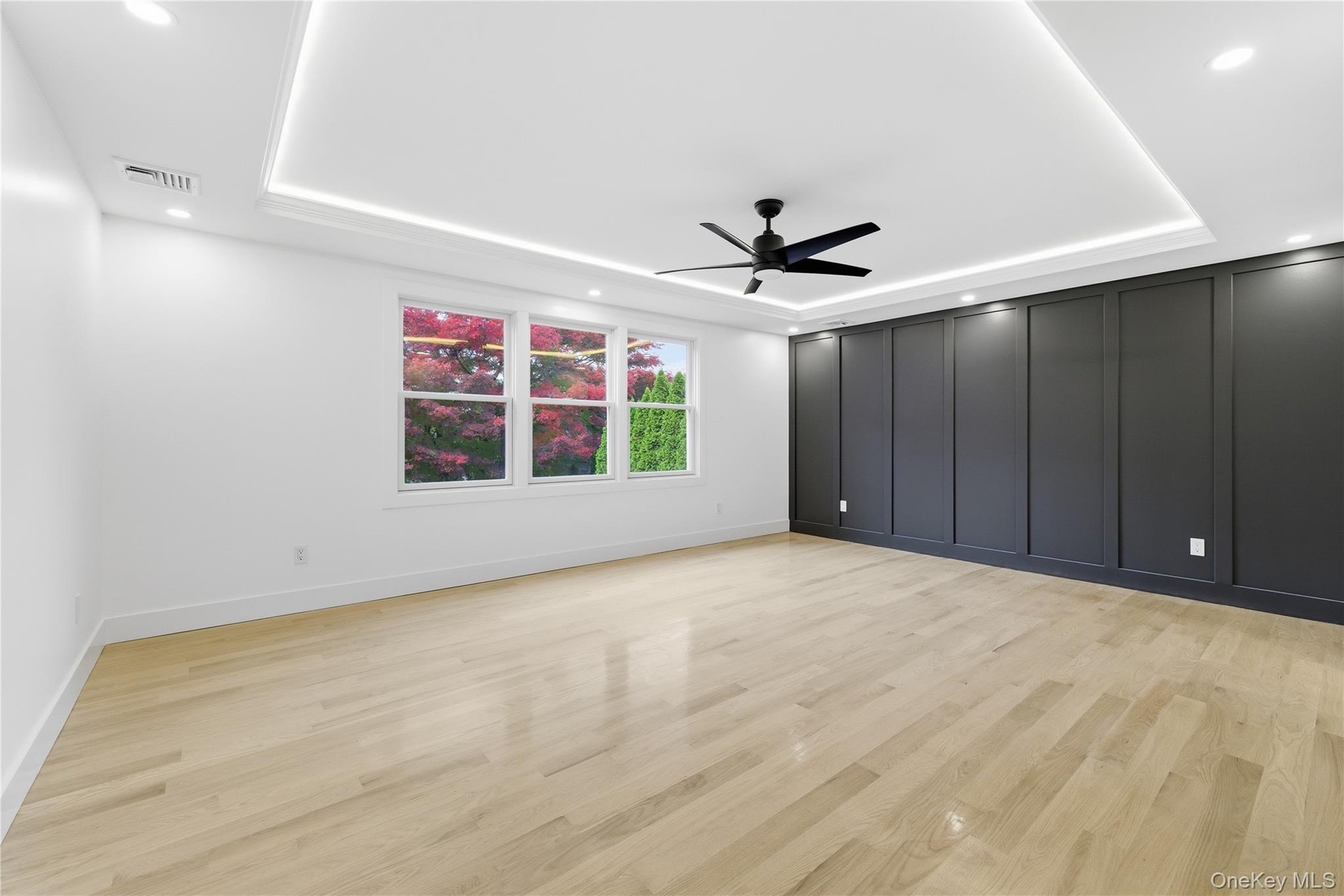 Welcome to this stunning 3,250 sq. ft. colonial nestled on a beautiful tree-lined street, offering timeless curb appeal and modern luxury throughout. Featuring 4 spacious bedrooms and 3.5 bathrooms, this impeccably updated home is designed for comfort, style, and effortless living. Step inside to an impressive two-story foyer highlighted by a custom chandelier and a beautifully crafted staircase. Brand-new hardwood floors flow seamlessly throughout the home, leading you into a bright living room, a cozy den, and a full eat-in kitchen equipped for the home chef. A convenient second-floor laundry closet adds to the thoughtful layout. The primary suite is a true retreat, offering a massive walk-in closet with custom shelving and a spa-like en suite bathroom complete with a separate tub and stand-up shower. The fully finished basement expands your living space with an additional 1100 sq. ft. of endless possibilities perfect for entertainment, a home gym, or additional storage. Modern mechanicals include a brand-new 2-zone HVAC system with forced hot air, a gas tankless water heater, and a gas stove for efficient, reliable performance. An attached 1-car garage provides additional convenience. Situated on a 6,960 sq. ft. lot, the property features a large backyard ideal for gatherings. Enjoy the covered patio with built-in lighting and a spacious outdoor fan that is perfect for relaxing, dining, or entertaining year-round. This exceptional home truly has it all. A must-see!