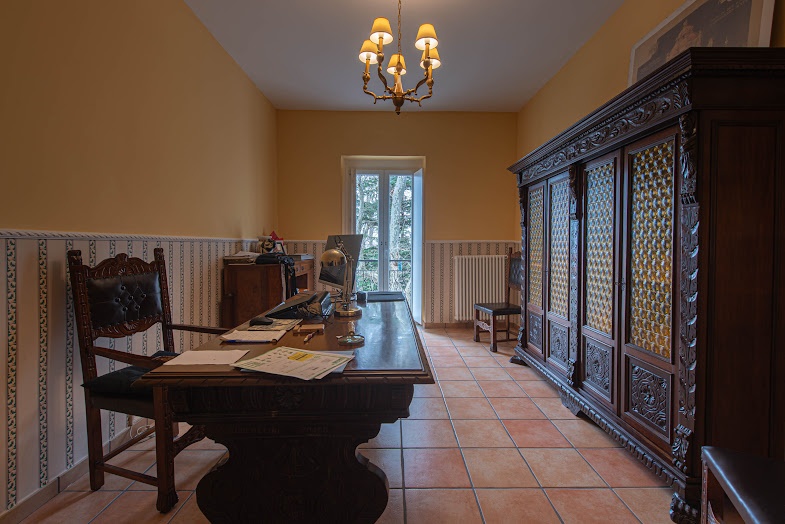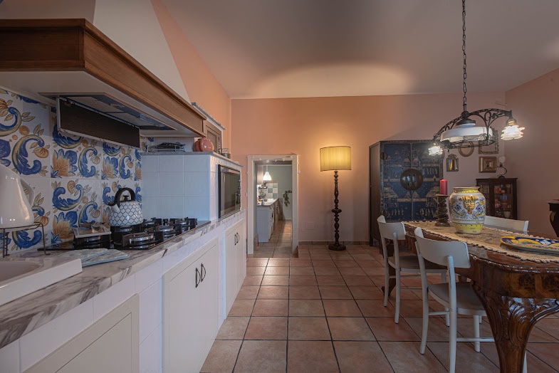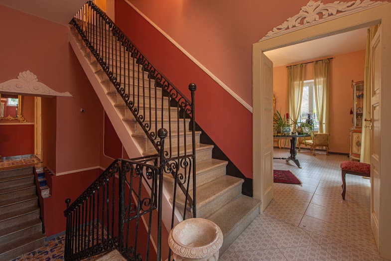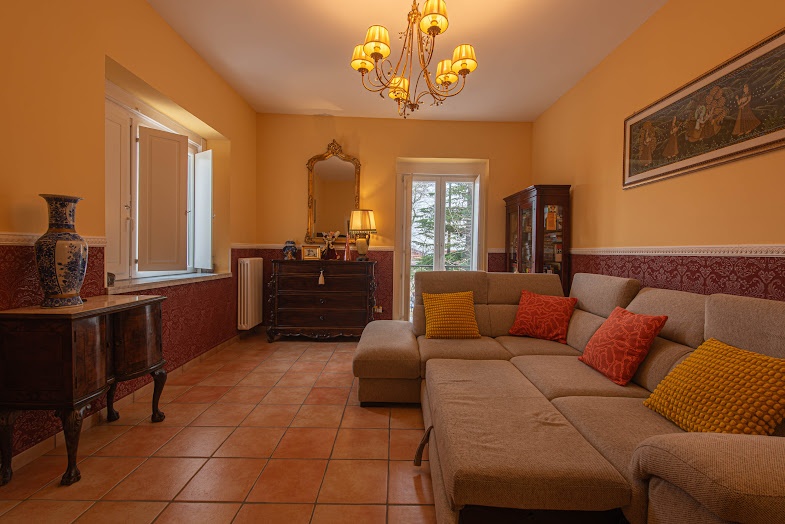 With stunning mountain views, ancient hiking trails, and easy access to cultural and natural attractions, this 500m2 property perfectly blends sustainable living with authentic Italian heritage. The villa spans three levels and features thirteen spacious rooms, four bathrooms, and two fully equipped kitchens adorned with artisan Vietri ceramic finishes. A grand internal staircase links the floors, offering flexibility for multi-family or guest-oriented use, while a 40m2 tavern-garage with natural tuff stone walls adds rustic charm, ideal as a wine cellar or event space. The top-floor solarium terrace provides panoramic views of the surrounding green mountains.
