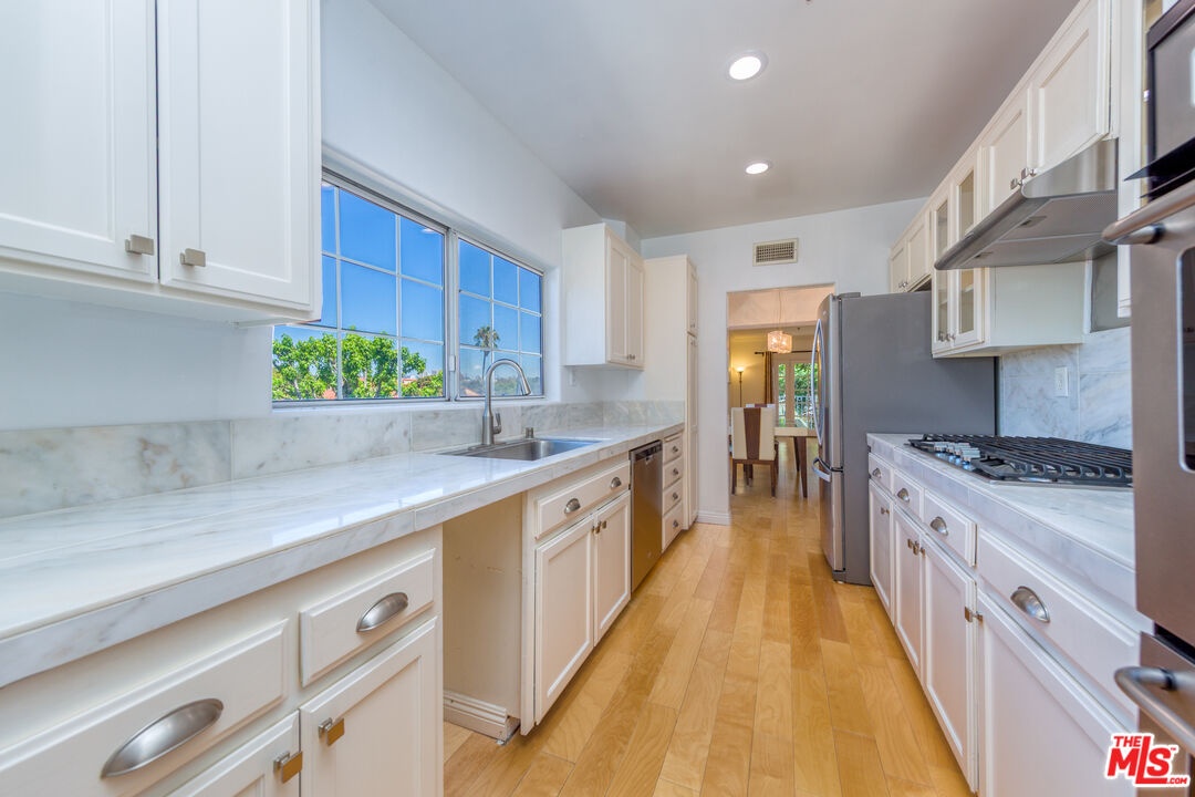 Exceptional price for this stunning Front-Facing Corner Unit in Prime Westwood. Impeccably maintained and beautifully appointed, this luxurious and bright front-facing corner residence features 2 bedrooms, 2.5 bathrooms, and a separate den/office/kids' area. The inviting layout includes a spacious and well-proportioned light-filled living rooms, formal dining area with a charming fireplace that opens to a private balcony with serene outdoor views, perfect for relaxing or entertaining. Designed to maximize natural light, the unit boasts large windows in every room and an exceptional floor plan that offers both comfort and functionality. The elegant living and formal dining areas seamlessly connect to a generously sized kitchen equipped with marble countertops and backsplash, stainless steel appliances, ample cabinetry, and a large window framing pleasant views. The versatile den/office/kids' area includes a stylish wet bar and can easily be converted into a third bedroom if desired. Both bedrooms are spacious En-Suites, including a luxurious primary suite featuring a cozy fireplace, private balcony, and a spa-like bathroom with dual sinks, a soaking tub, and a separate glass-enclosed shower. Set within an exclusive 8-unit building offering unparalleled privacy with only two residences per floor. This residence has been freshly painted and is in pristine, move-in ready condition. Additional highlights include beautiful wood flooring throughout the living areas and bedrooms, recessed lighting, in-unit laundry, a secure private two-car garage, and low HOA dues. Located within the sought-after Westwood Charter School District and just minutes from Century City Mall, UCLA, Holmby Hills, Beverly Hills, Rancho Park, Brentwood, and Santa Monica. With easy access to major freeways (10 & 405), Metro station, top-tier shopping, dining, and entertainment, this is a truly exceptional offering in one of L.A.'s most desirable neighborhoods. PLEASE DONT