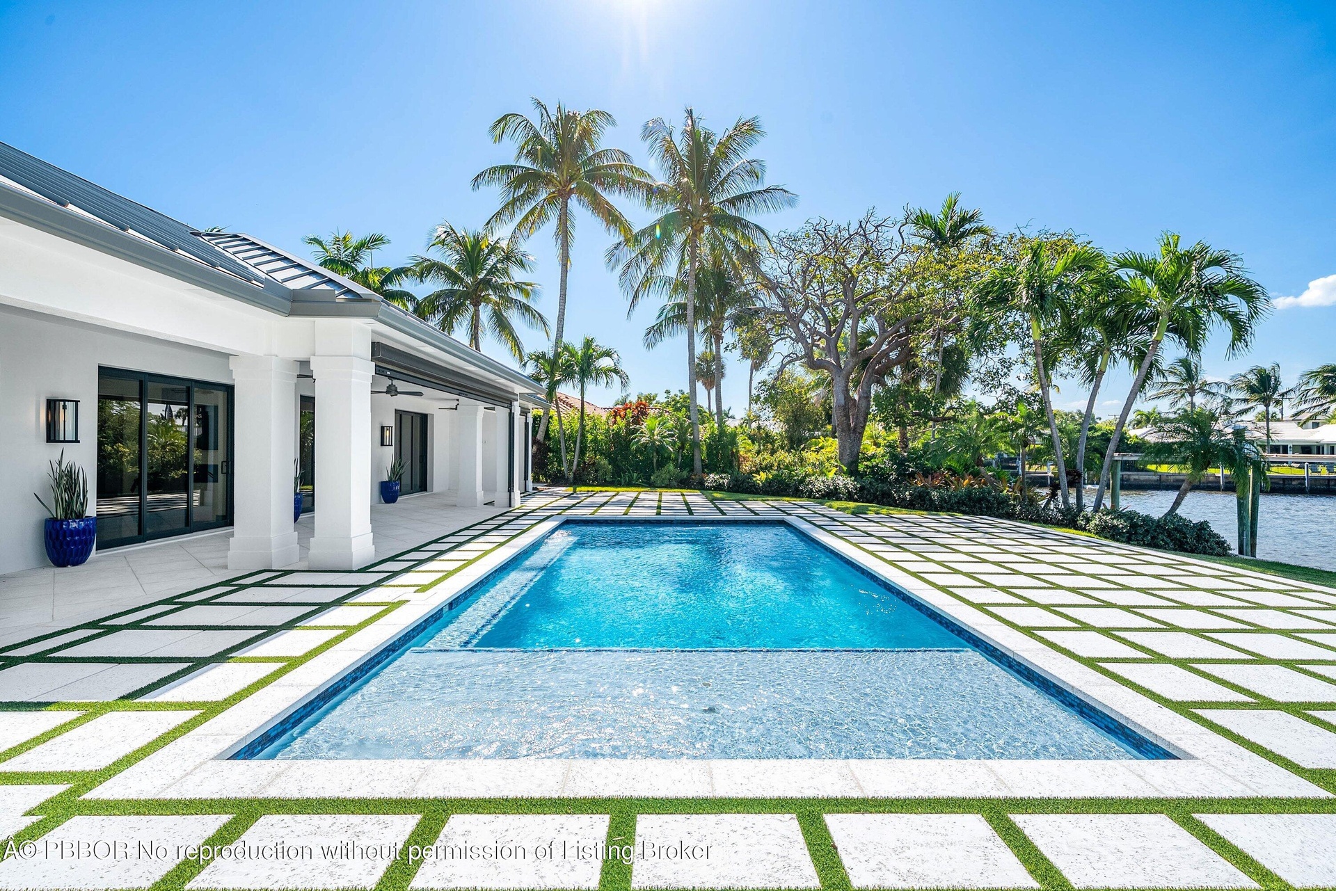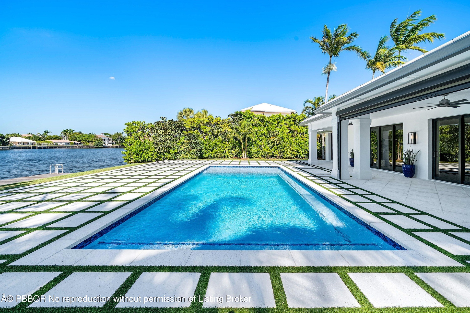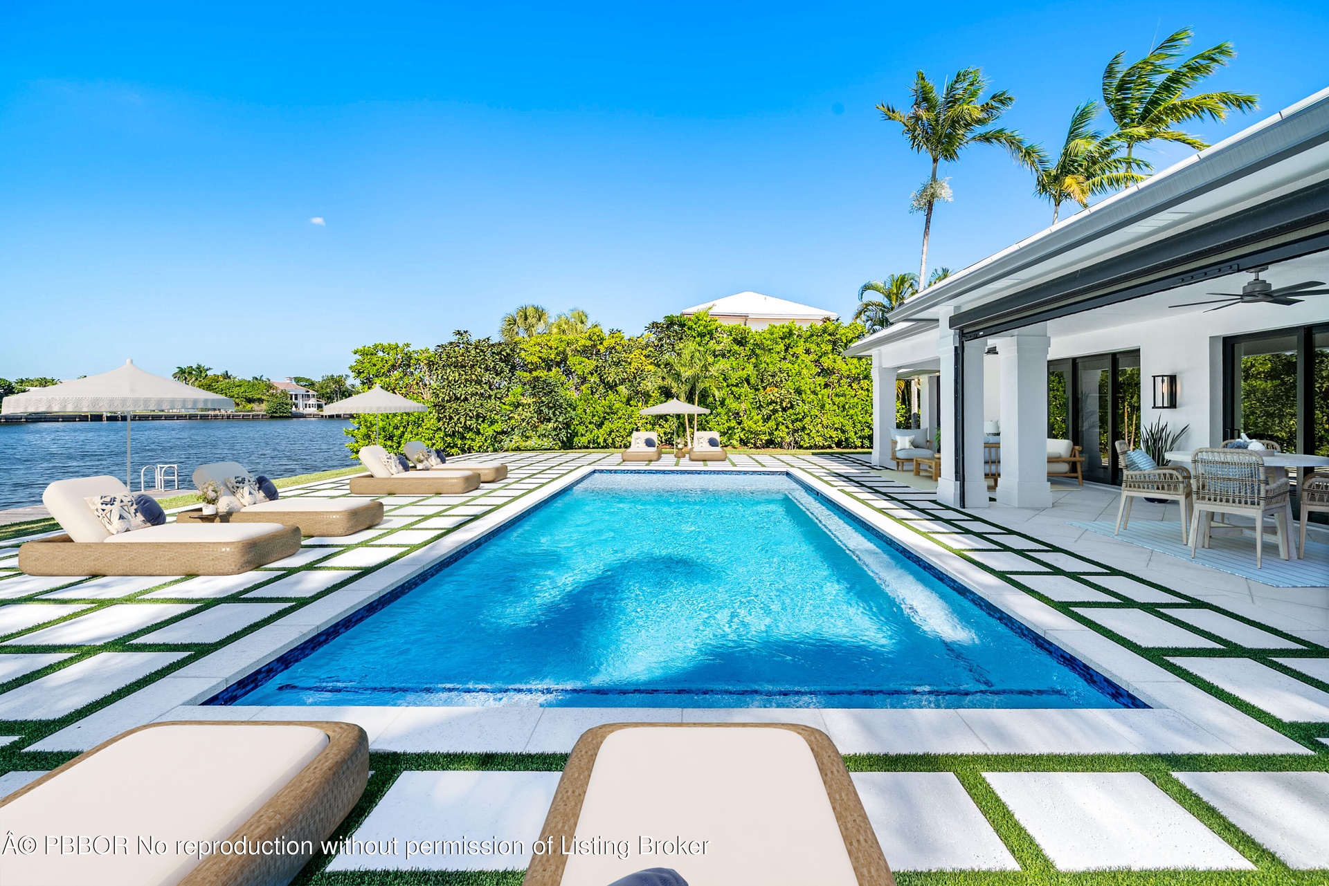 Just completed and rarely available is this exquisitely rebuilt waterfront residence in the coveted, guard-gated community of Point Manalapan. Known for its privacy, security, and upscale lifestyle, Manalapan offers an exclusive island setting unlike anywhere else. This transitional modern home has undergone a meticulous, multi-year, ground-up renovation, delivering the finest in turn-key luxury living. Everything about this extraordinary home is BRAND NEW! Including new high impact windows / doors, garage doors, roof, electrical, plumbing, appliances, HVAC, hot water, interiors/exteriors, pool, hardscape/landscape, dock, and more.