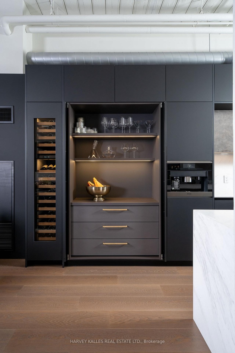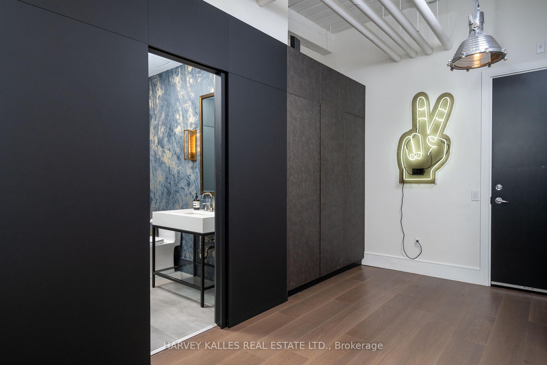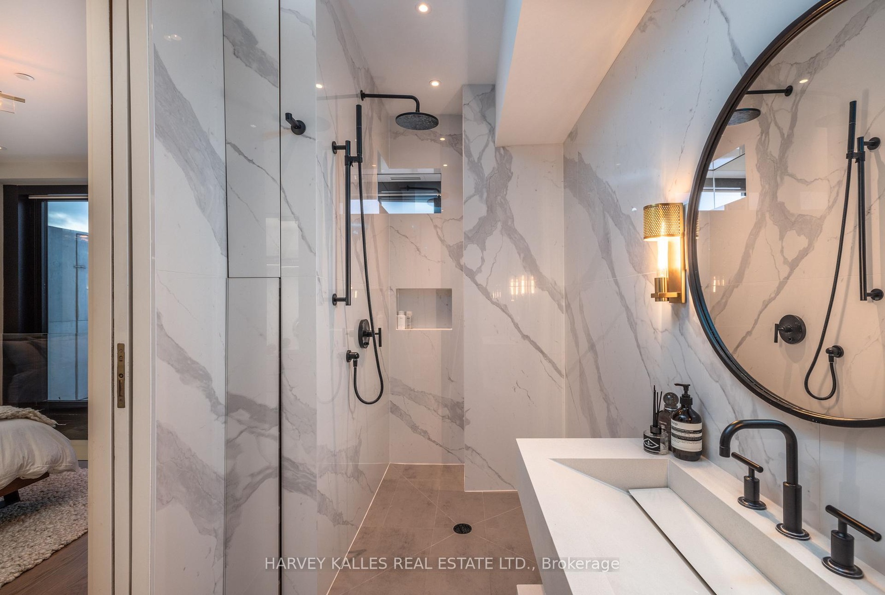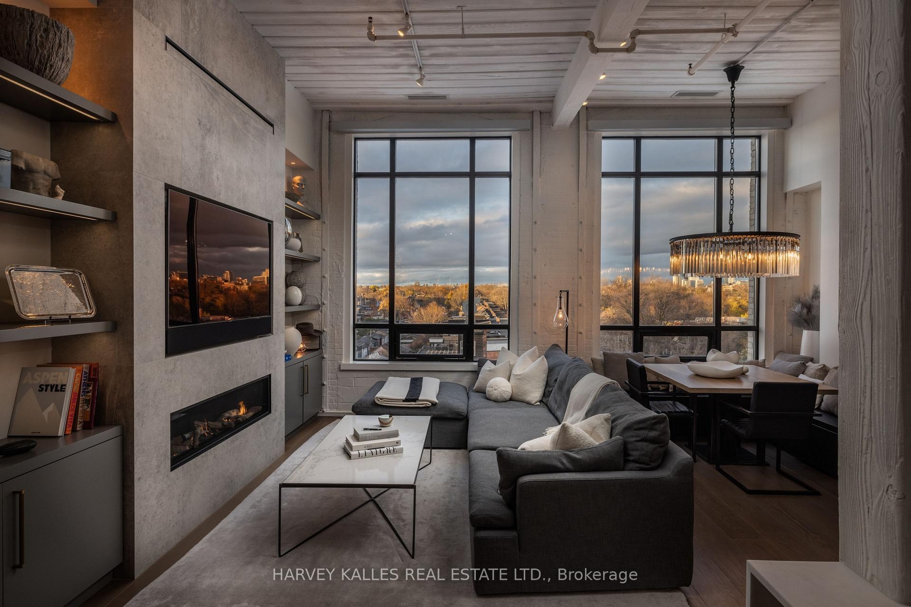 A one-of-one masterpiece in Toronto's legendary Candy Factory Lofts, where a top-to-bottom custom renovation meets a spectacular private terrace and unmatched attention to detail. This rare two-storey penthouse is a true showpiece, complete with two parking stalls and a design that perfectly balances industrial soul with refined modern living. Every inch of this home has been meticulously reimagined. The custom HVAC integration preserves the open window line, while soundproofed walls and a Lutron-controlled lighting system create an effortless, ambient flow. Select-grade wide-plank white oak floors, low-iron Starfire glass railings, and a one-piece honed marble island set the tone for the Italian-crafted kitchen and open living space. The kitchen blends form and performance with Wolf double ovens (including steam), a rare in-unit gas grill with downdraft, Sub-Zero refrigeration and wine column, Miele coffee system, and concealed bar and pantry storage. Upstairs, dual bi-fold glass doors (craned in) open to an expansive terrace with a Wolf BBQ station, outdoor fridge, and linear fireplace, creating an entertainer's dream with unobstructed sunset and skyline views over the park. Outfitted with five Sonos zones, three Samsung Smart TVs (including one outdoors), dual Nest thermostats, and a professionally managed Lutron system, every feature is deliberate, connected, and elevated. Both bathrooms feature Toto fixtures and Kohler upgrades, and the home includes weekly cleaning, monthly organization, and on-site car detailing, with annual patio care and storage included. An irreplaceable residence that defines what true loft luxury can be. PH 12 at The Candy Factory is a singular home for those who value design, craftsmanship, and the rarest of outdoor spaces.