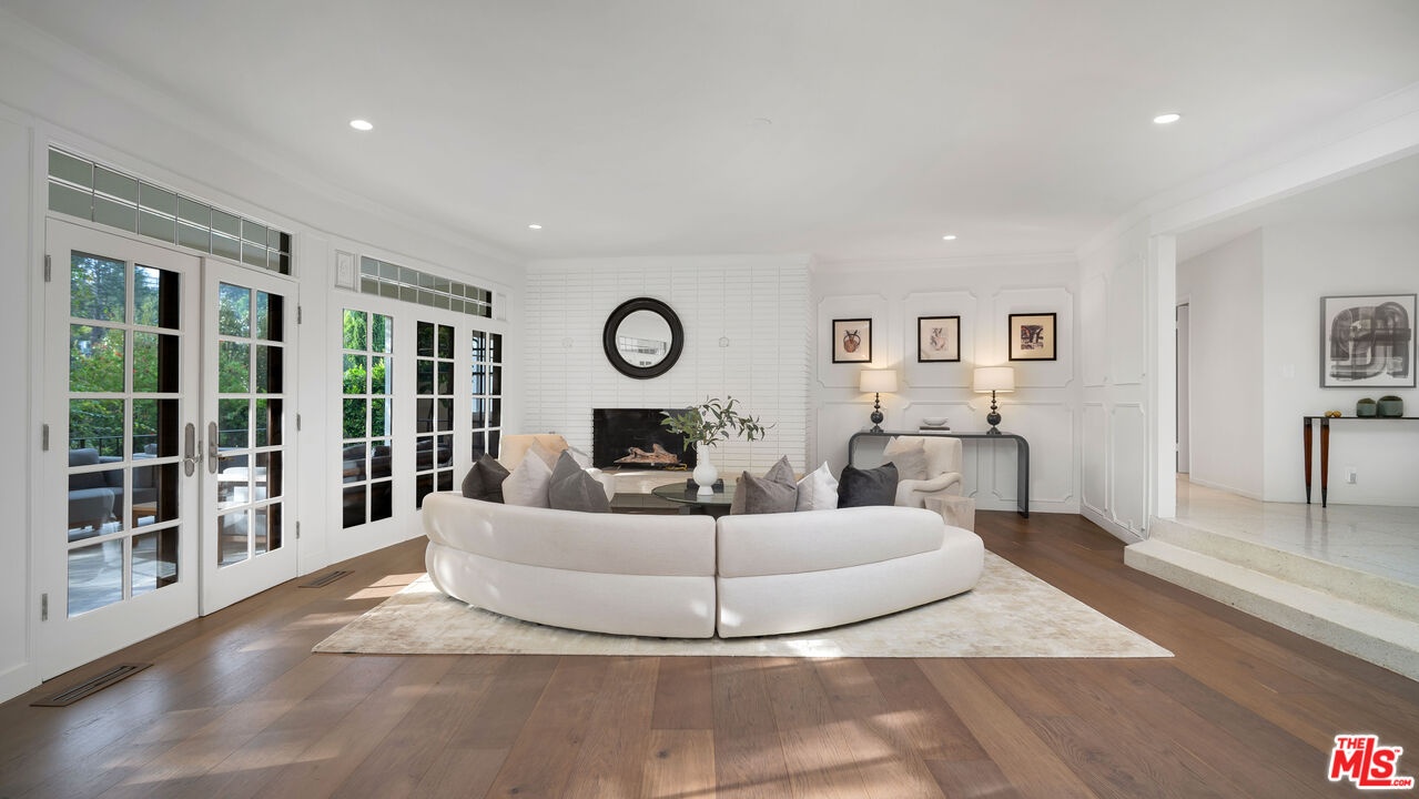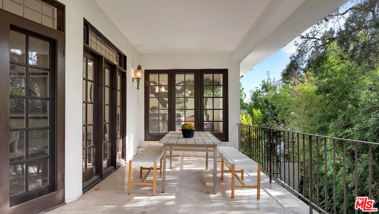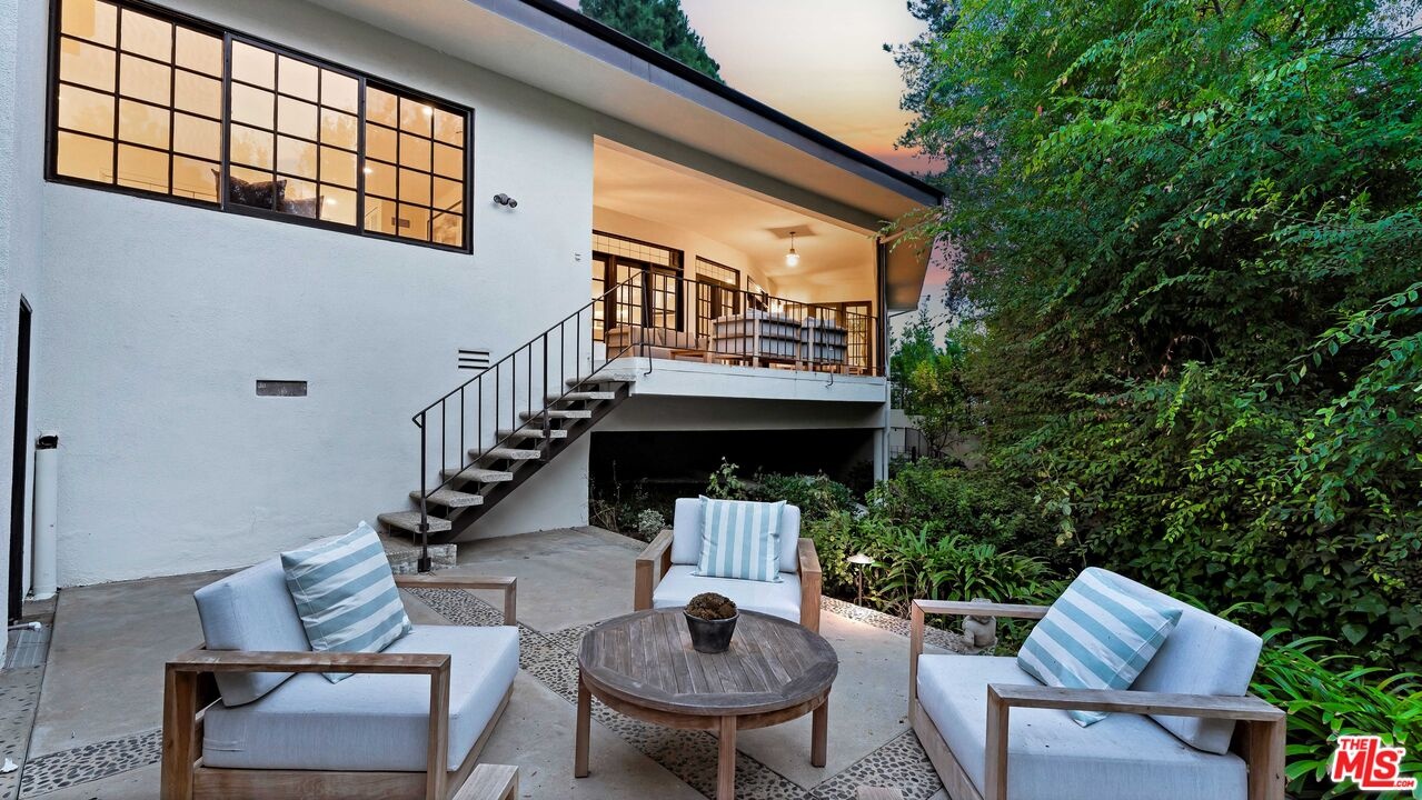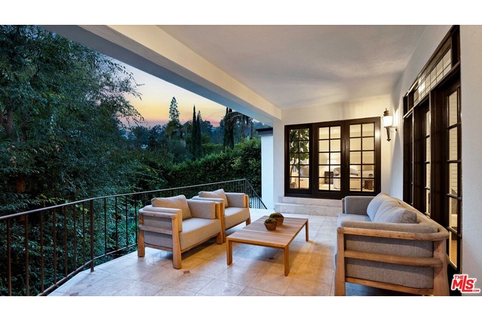 Tucked into one of Angelo Drive's most coveted enclaves, this masterfully renovated mid-century residence blends classic 1960s architecture with elevated contemporary upgrades, thoughtfully integrated to preserve the home's mid-century character. Set on a secluded drive just moments above Sunset Blvd, the property offers unmatched privacy and tranquil treetop outlooks.Beautifully reimagined, the approx. 3,400 SF floor plan includes 4 bedrooms and 4 refined baths, with expansive, sun-filled living spaces framed by restored French doors and oversized windows. A deep wraparound balcony connects the living room, dining room, and primary suite, creating a seamless indoor-outdoor flow. The sun-washed chef's kitchen features a generous stone-topped island, premium stainless appliances, custom cabinetry, and a sunlit breakfast nook. The primary suite opens directly onto the terrace and enjoys serene garden views and a spa-inspired bath with dramatic stone finishes, large walk-in shower, and a deep step-down soaking tub. Curated upgrades throughout include new flooring, renovated bathrooms, designer lighting, refreshed finishes, and improved systems. The grounds include mature landscaping, a spacious terrace for dining and lounging, and a wide motor court with covered parking. A refined, mid-century retreat in one of BHPO's most discreet pockets-offering privacy, architectural charm, and effortless access to Beverly Hills, Holmby Hills, and top-rated Warner Avenue Elementary.