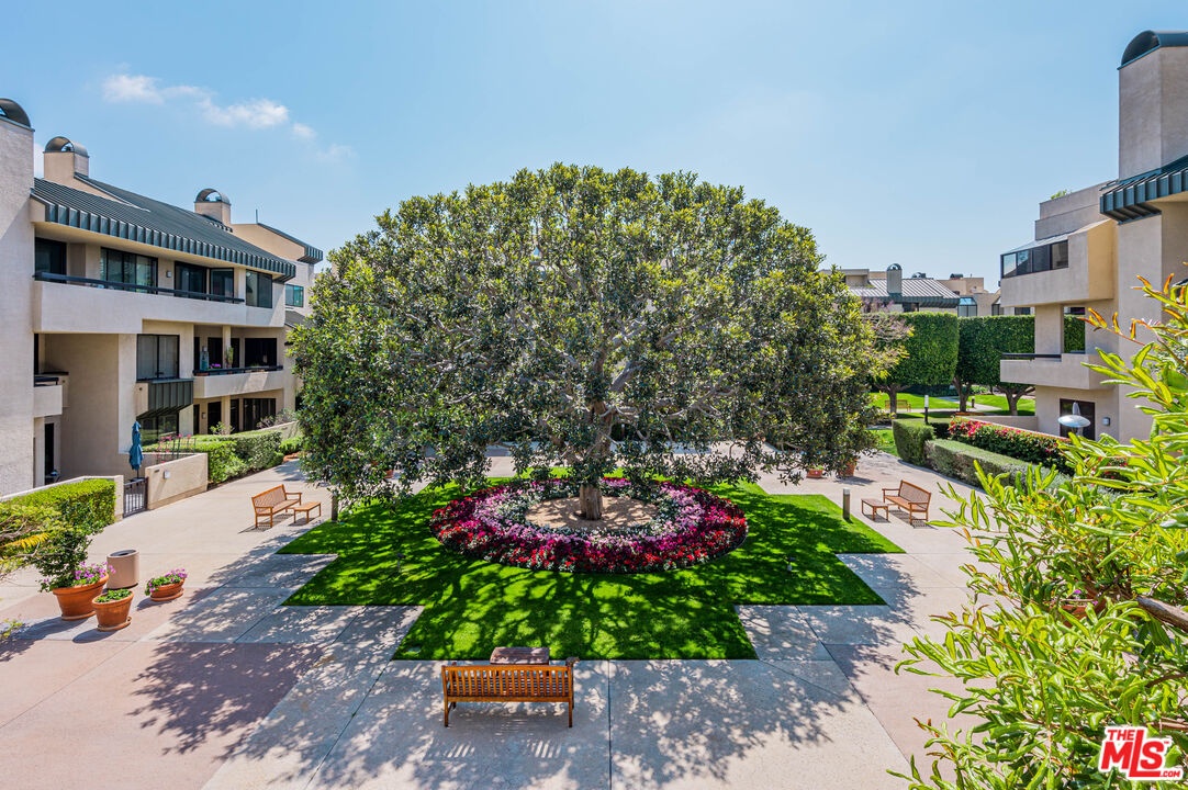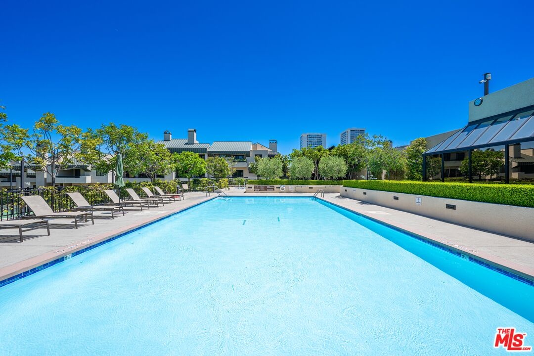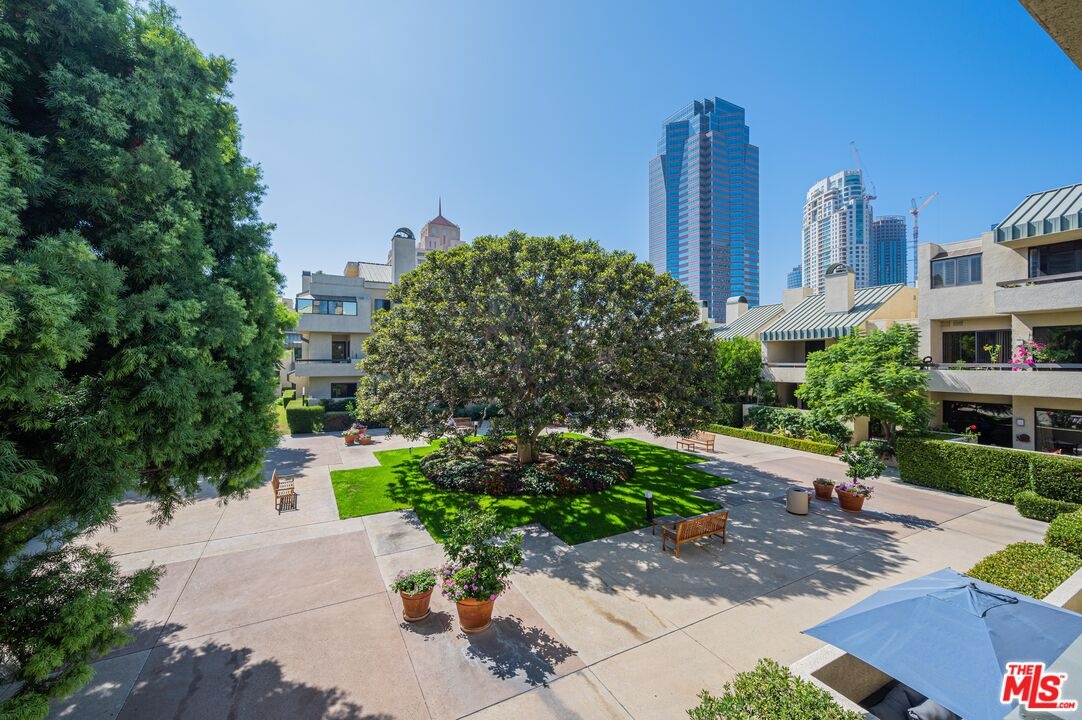 Welcome to the prestigious community of Century Hill, located in the heart of Century City. This first-floor single-level condominium offers an artful floor plan providing the perfect balance of open entertaining spaces and a separate bedroom wing for privacy. As you enter, a grand living room filled with natural light greets you. Two sets of tall sliding doors open onto a large veranda running the length of the LR & DR and can accommodate tables, chairs, and chaise lounges. Completing the area is a fireplace, a wet bar, and a discreet powder room. The breakfast area, which opens onto the kitchen, is perfect for enjoying morning coffee while taking in the view of mature trees and blue skies through the oversized windows. Transform the kitchen into a chef's delight and enjoy dining in the dining area or on the outdoor patios. Relax at the end of the day in an ample-sized primary bedroom complete with high ceilings, a private patio, and an en-suite bathroom with a walk-in closet and second closet, a large shower, and a soaking tub. An additional second suite with an en-suite bath is perfect for guests. This double-exposure corner unit is available for a discerning buyer who values neighborhood pedigree, the lock-and-leave lifestyle, security, and a central location. Amenities, including five pools, a fitness center, a large package room, an indoor driving range, on-site management, tennis courts, high-end security, a clubhouse with a full catering kitchen, and much more, make this an excellent place for a downsizer seeking a lock-and-leave lifestyle.