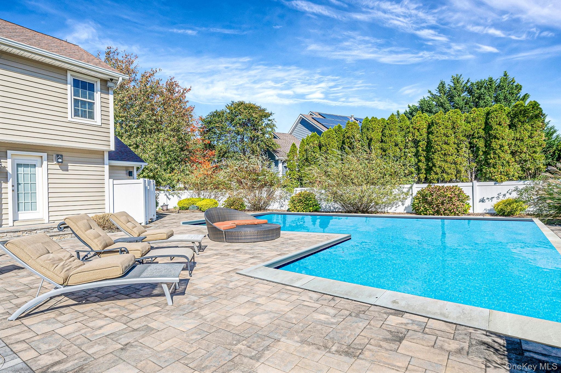 Don't miss this 4 bedroom Commack Country Estates Colonial beauty with an amazing resort like backyard. The updated eat in kitchen has granite countertops and stainless steel appliances. The main floor is light and bright with newly painted walls throughout. The easy living floor plan includes an open kitchen, leading to both the formal living room, dining room, and large den. Off the kitchen lies the powder room and laundry room. The Kitchen has sliders that open to a beautiful backyard, perfect for entertaining, with an outdoor kitchen, inground pool, outdoor shower and "The Party Pit Gazebo". The Gazebo has a full custom stone bar with portable gas heaters, hot and cold running water, refrigerator, ice maker and water fall feature. The large inground pool is surrounded by custom pavers and a "sandy circle" allowing for cozy nights around the fire pit. Upstairs you will find the grand primary bedroom with an updated en-suite bathroom, boasting a large stall shower and double sink vanity. Also upstairs are 3 additional nicely sized bedrooms and a full bathroom. The large finished basement has new carpeting, new paint, and plenty of living and storge space. Additional features of this home include a newer roof, newer central air conditioning, newer windows and siding, 200Amp electrical service, alarm system, inground sprinklers and an oversized driveway.