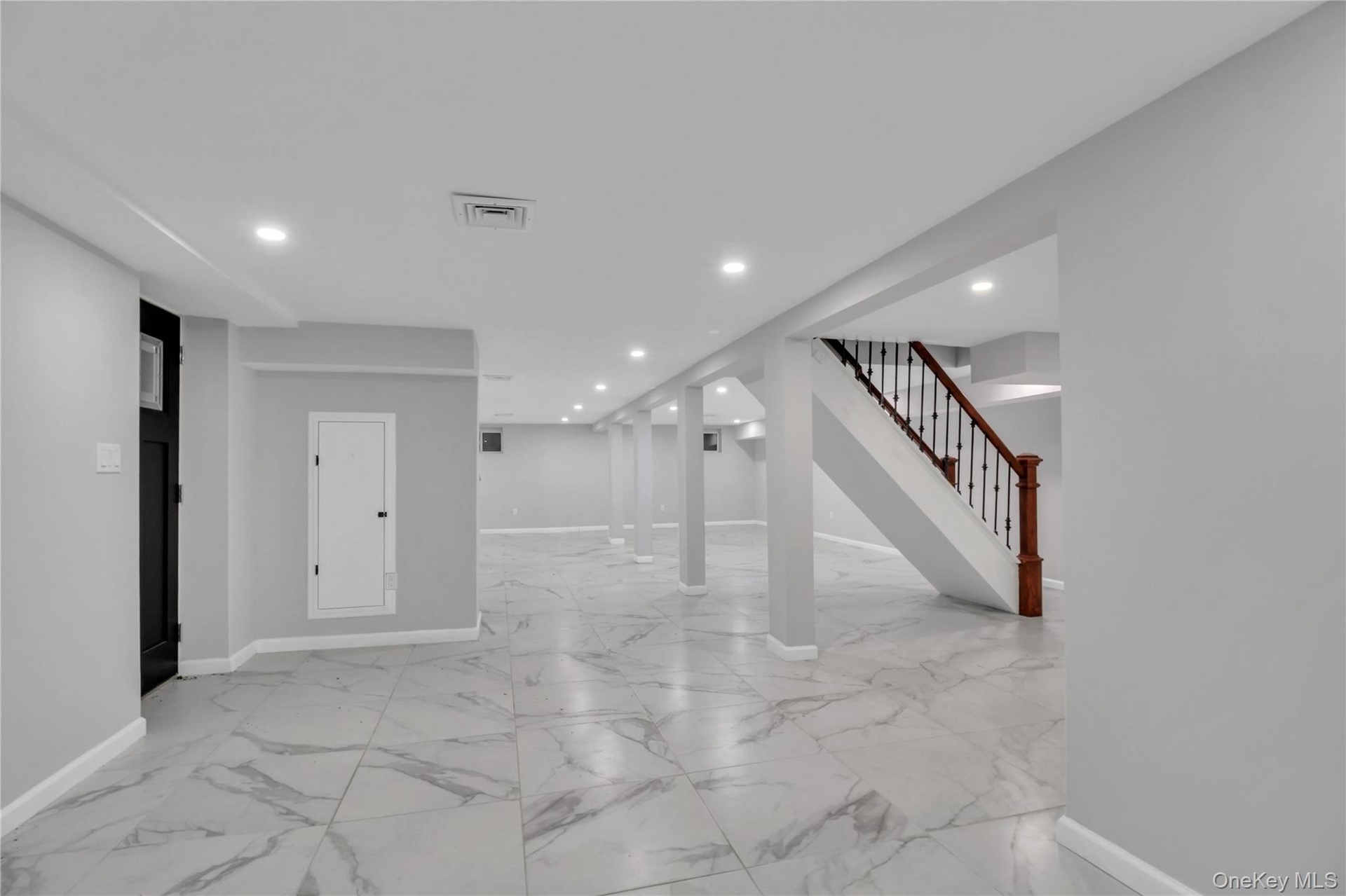 The finished basement, complete with a private entrance, provides endless possibilities: a deluxe entertainment lounge, home gym, or a private in-law/guest suite.