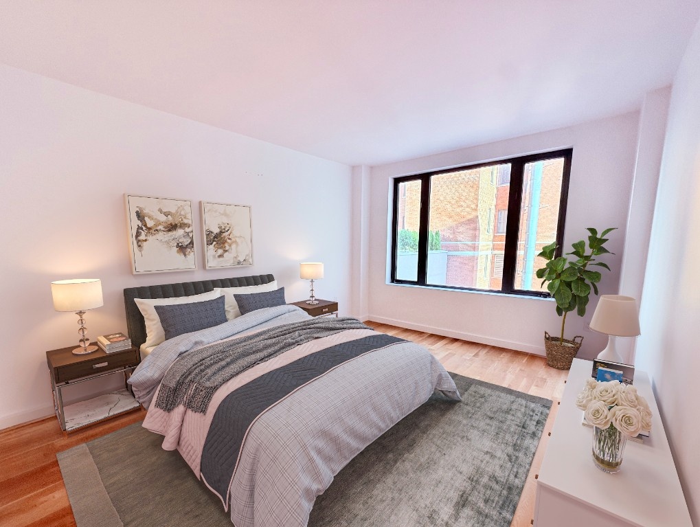 Youll also love escaping to your enormous bedroom measuring a whopping 11'3 x 15'1", which easily allows for a king-size bed, furniture set and desk or space for your Peloton. Additional apartment features include a huge 28 sf walk-in closet, a vented LG washer and dryer, pristine white oak hardwood floors, and central AC.