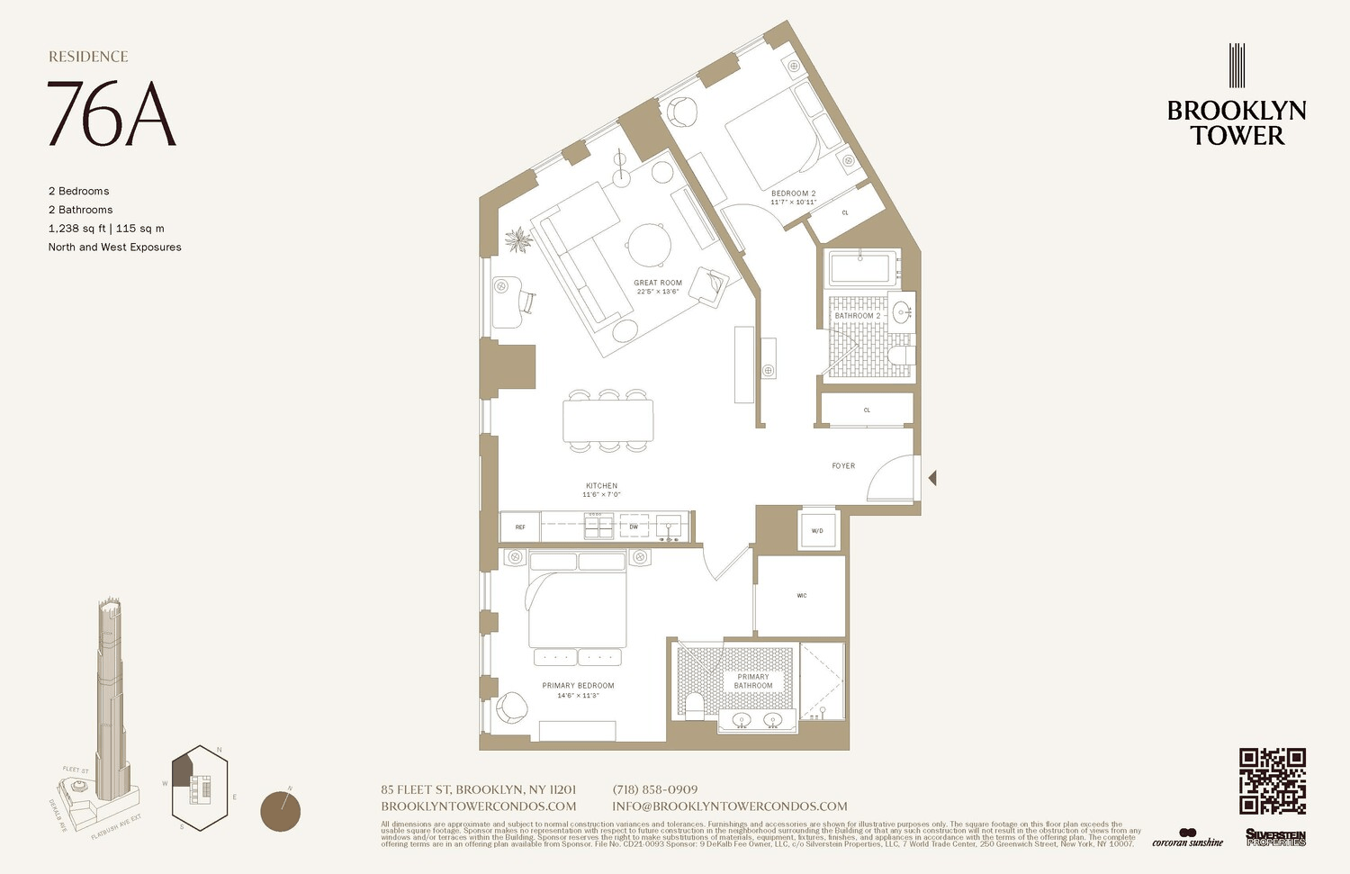 Immediate occupancy. Designed by award winning SHoP Architects, residence 76A is a generously proportioned 1, 238 sf southwest facing two bedroom, 2 bathroom home with ceiling heights up to 11 ...