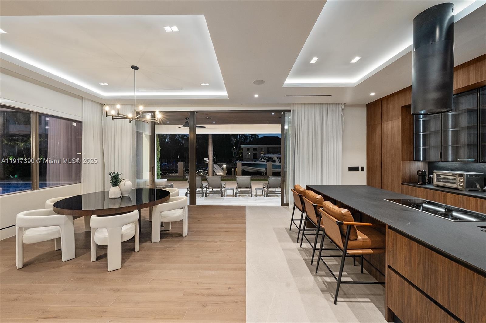 Just under 3,700 sq ft of completely remodeled modern luxury. This home delivers a wide-open floor plan with natural light pouring in the second you walk through the door. Inside, you’ll find flush linear diffusers, flush baseboards, European flush wood doors, and custom domed ceilings throughout. The custom Mia Cucina kitchen features leather granite counters, a double JennAir refrigerator, JennAir oven and steamer, and a built-in wine cooler. Smart-living upgrades include 16 security cameras and automatic curtains in the master, kitchen, and living areas. The home is topped with a double-ply insulated metal roof engineered to last 100 years. The backyard delivers true waterfront living with 100 feet of water frontage, direct ocean access with no fixed bridges, a new saltwater pool, jacuzzi, beach entry, new decking, raised yard, new seawall cap, concrete pilings, and aluminum gates — all finished with modern landscape lighting and an electric spigot for boaters.