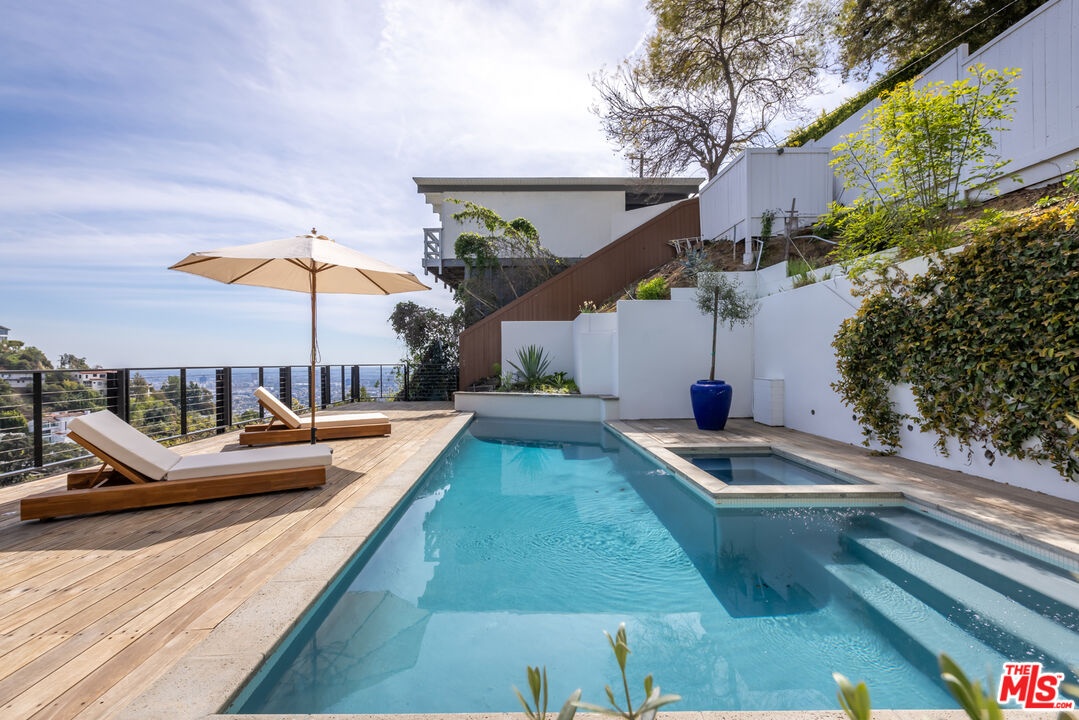 AVAILABLE NOW. The hottest rental in the Famed Sunset Strip has hit the market! A mid-century jewel perched on a rare and coveted double lot, this ultra-private post-and-beam dream home offers breathtaking, cinematic views of the LA Basin, a 30' pool and spa, and the ultimate setting for a true socal living. Inspired by the Puglian countryside and the romance of the Mediterranean, the property is wrapped in lush ivy and olive trees, offering a tranquil, design-forward retreat in the heart of LA's most iconic neighborhood. Completely private and hidden, step inside and be transported to an effortlessly chic pied-e-terre, where refined minimalism meets artful design. With two spacious bedrooms, two baths, and a sprawling 3,000SF IPE deck, this Sunset Strip estate is made for al fresco dining, sunset aperitivos, and impossibly glamorous soirees under the stars. The built-in BBQ, multiple lounge areas, and sparkling pool set the tone for an endless summer of indulgence. Inside, walls of glass blur the line between indoor and outdoor living, framing jaw-dropping city views from every room. The primary suite spills directly onto the terrace and features a spa-like bath, complete with a jacuzzi tub, Carrara marble vanity, and vintage Parisian hardware. The petite yet impeccably designed european kitchen features custom cabinetry, luxe appliances, and a dining area perfectly positioned to capture golden-hour magic. Nestled just off the famed Sunset Strip, you're steps from the city's most coveted restaurants, chic boutiques, and legendary nightlife. Truly, this is one of the sexiest homes in all of the Hollywood Hills, a place you'll want to live in, revel in, and, of course, show off. Two car garage is included with ample parking on the quite and private street. Security + Alarm Included! Available unfurnished or fully furnished
