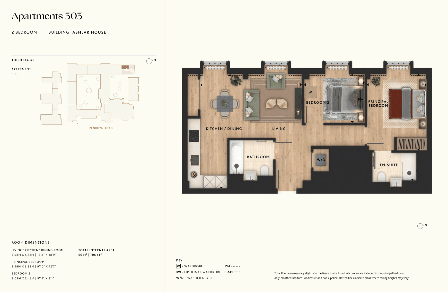 The 2-bedroom homes at Ashlar House offer exceptional proportions, elevated ceiling heights and refined heritage character. Apartments feature spacious layouts with generous principal bedrooms, en-suites and large living spaces framed by original heritage windows.