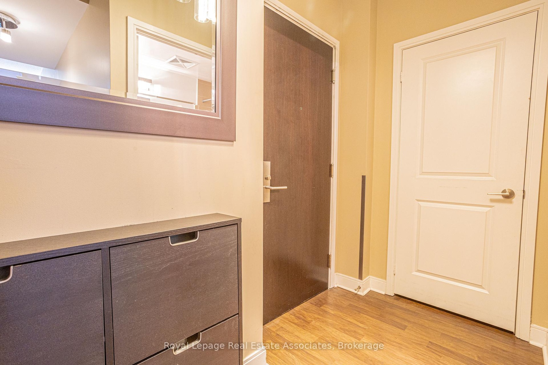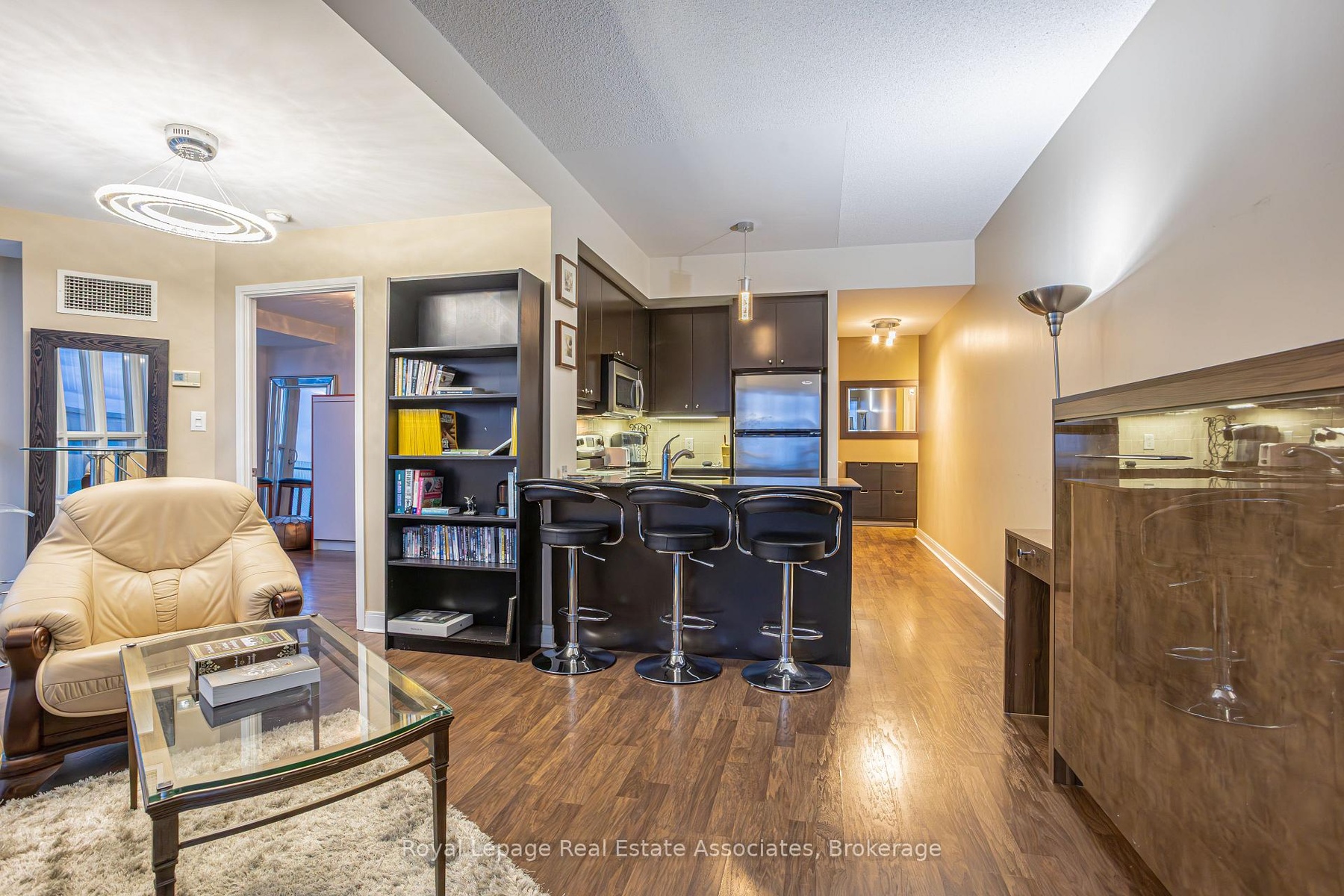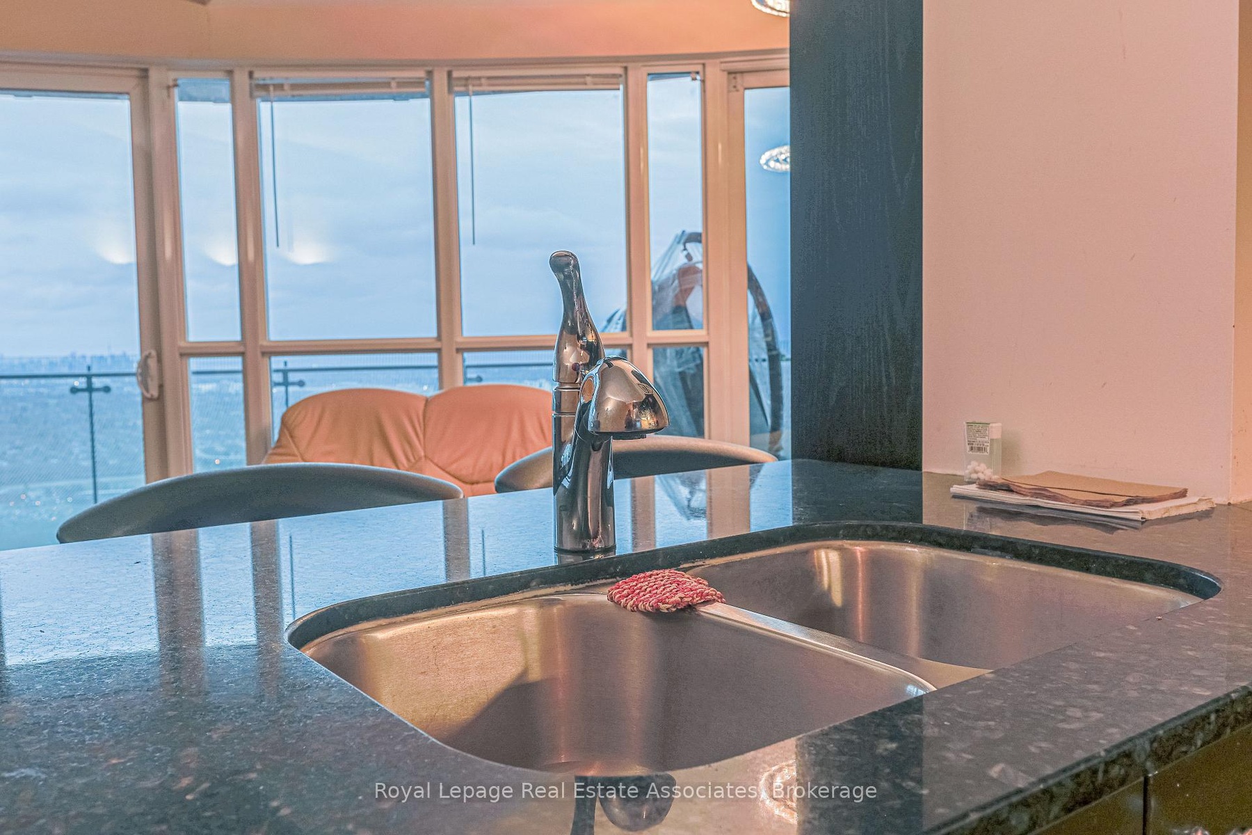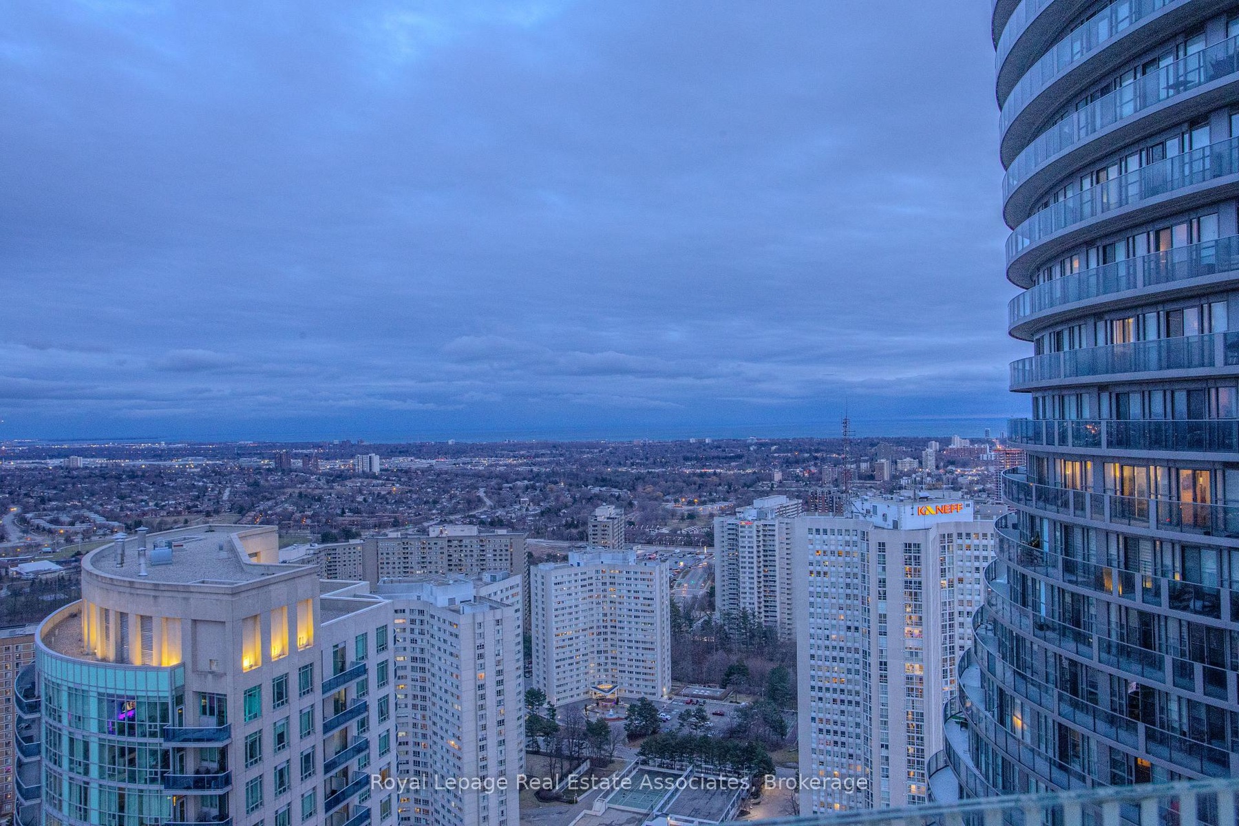 This fully furnished 1-bedroom, 1-bathroom condo offers unparalleled southeast-facing panoramic views of the lake and Toronto skyline - a stunning backdrop for everyday living. Floor-to-ceiling windows fill the space with natural light, showcasing beautiful sunrises and sunsets right from your living room. Designed with both style and versatility in mind, the living area features a custom built-in wall unit that seamlessly converts into a comfortable guest bed without compromising space. The bedroom includes a clever fold-out wall bed, offering added functionality for visiting family or friends. Located in the heart of Mississauga's vibrant City Centre, you'll enjoy walking distance to world-class dining, shopping, and entertainment, as well as convenient access to transit and major highways. Whether you're looking for a turnkey home or a smart investment, this condo combines modern design, unbeatable views, and prime location in one perfect package.