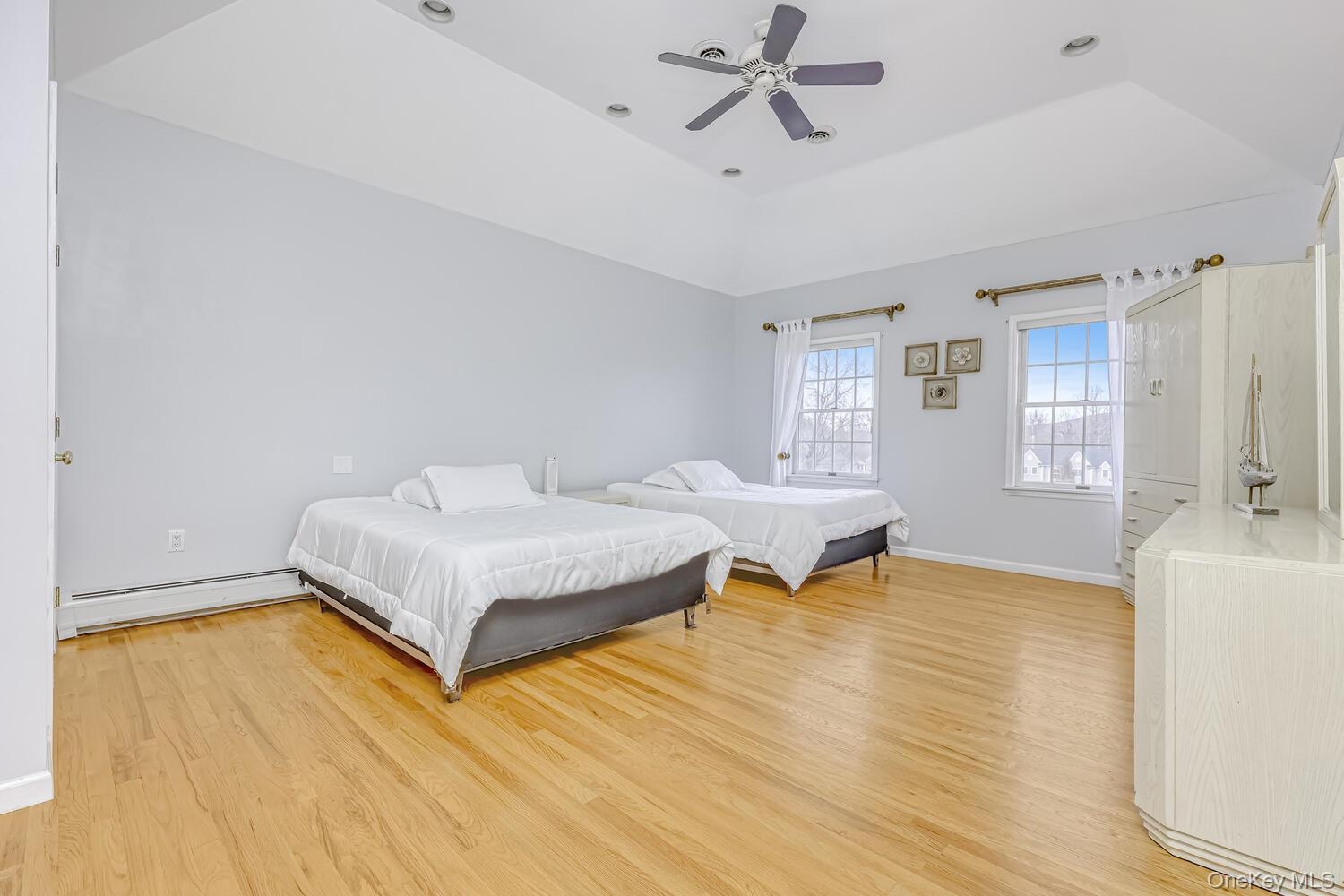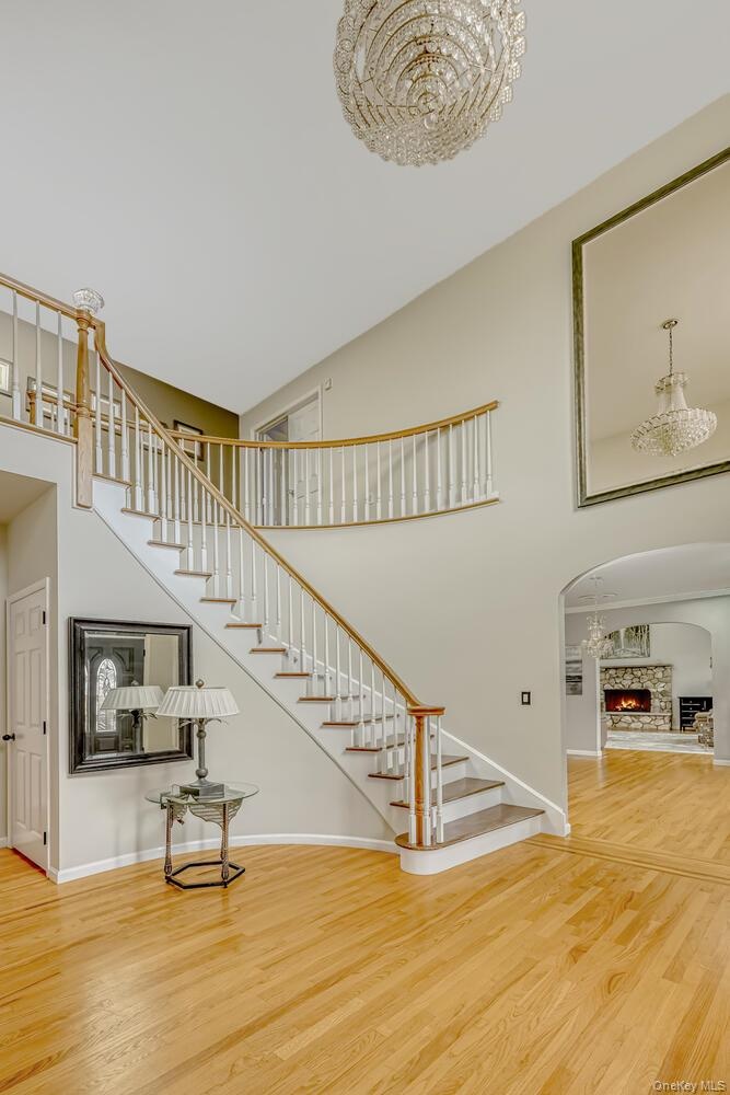 Tucked at the end of a peaceful cul-de-sac with beautiful views of the Montebello hills, this exceptional 6-bedroom, 5.5-bath colonial offers nearly 5,800 sq ft of well-appointed living space. A dramatic two-story foyer welcomes you inside. Sun-filled formal rooms in the front of the home—ideal for a living room, office, or dining area—feature oversized windows and gleaming hardwood floors.