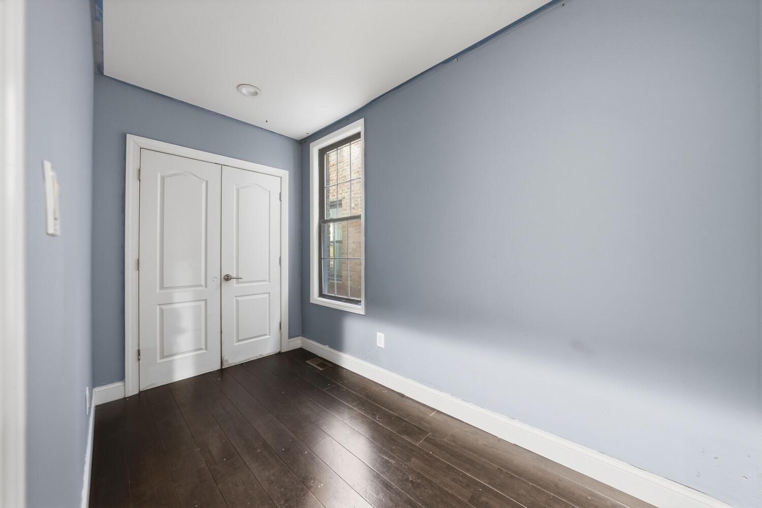 The first-floor unit is entirely vacant-offering direct access and flexibility. It features 3 bedrooms and 2 full bathrooms. The owner's bedroom enjoys a private en-suite bath. The kitchen shows white shaker-style cabinets, dishwasher and dark wood floor throughout. On this floor, you have a side door entrance that leads to your private outdoor space. Interior stairs to the full finished basement. The oversized basement adds extra usable square footage for the homeowner to enjoy which also has a 1/2 bathroom and laundry room.