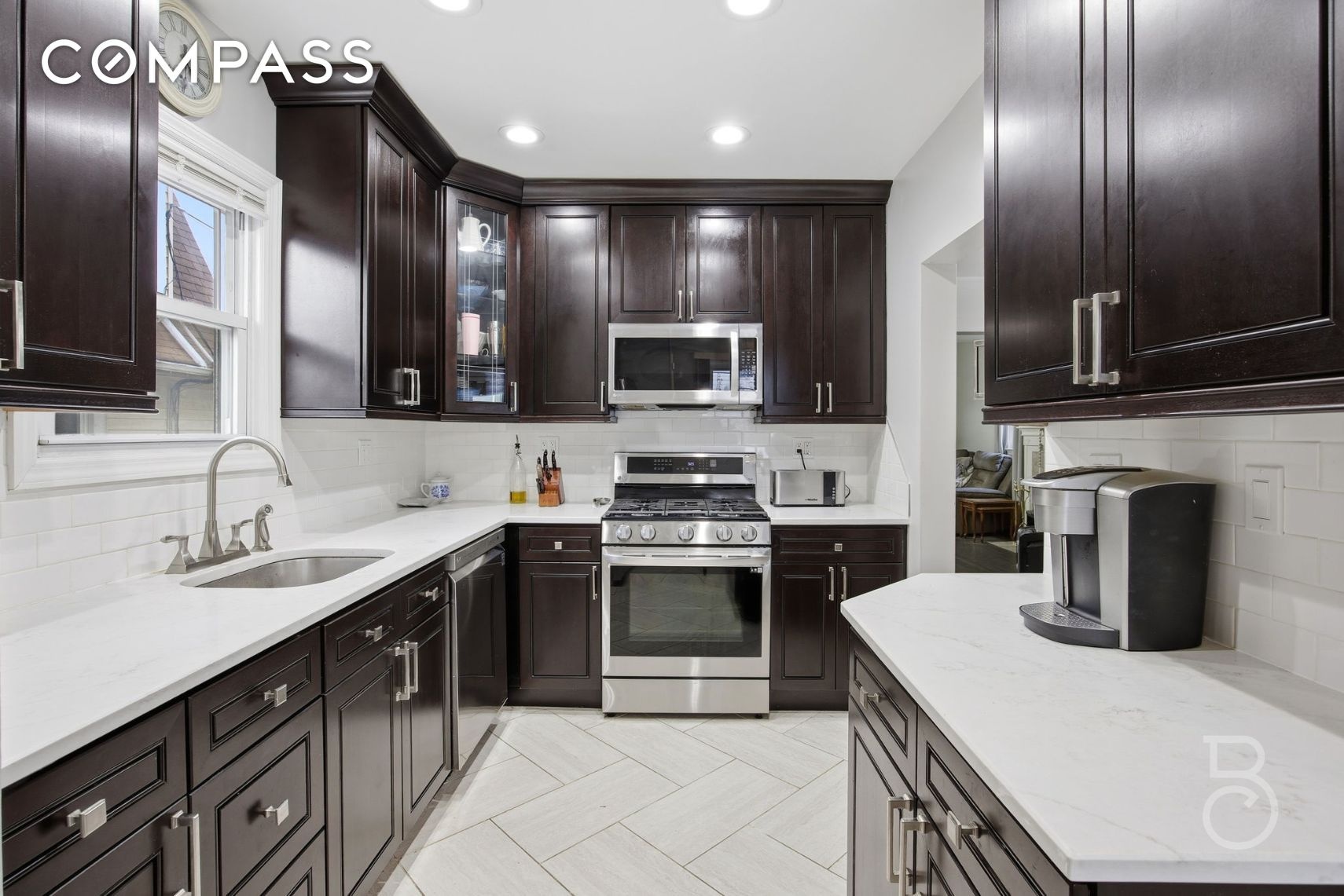 Welcome home to this fully detached one-family in a fabulous Bayside, Queens location. Set on a 40-foot-wide lot just moments from Bell Boulevard and the LIRR, this sun-filled home combines convenience, space, and incredible outdoor living. An extra-wide private driveway provides abundant off-street parking, along with easy street parking and a two-car garage. The private fenced yard with pool creates a true at-home retreat ideal for relaxing or entertaining. This home is fully appointed with a recently gut-renovated kitchen, and freshly updated baths- all meticulously maintained! Inside, you’ll find an open living area and a spacious formal dining room that flows beautifully to the kitchen for gathering and entertaining. The home boasts three stories of living space plus a basement. The large attic with full-height ceilings works perfectly as a home office, playroom, fitness room, or flexible bonus space. In mint, move-in-ready condition and set in one of Bayside’s most sought-after neighborhoods, this property is a standout opportunity.