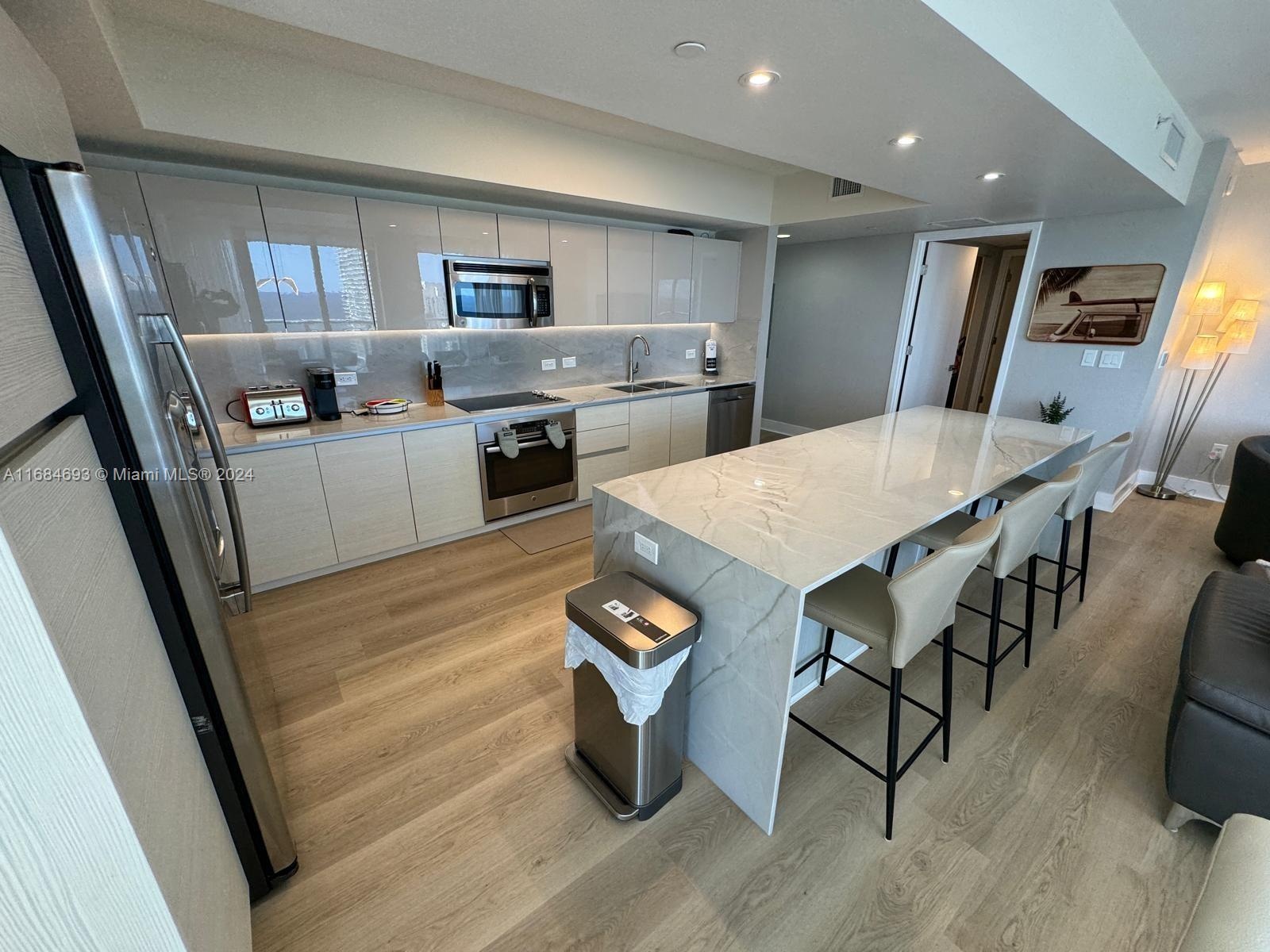 With NEW FLOORS, NEW KITCHEN and superb views of the City, Intracoastal, Ocean, and Direct ocean. This open floor plan features a private elevator, foyer, luxury kitchen, split bedrooms and baths, large wrap-around outdoor living balconies, and access to Beach Front Club House. Enjoy resort-style living with a private rooftop pool deck for OWNERS ONLY, Plus an Intracoastal pool, gym, valet in this premium location. Walk to the beach or be driven by building staff. The unit can be rented by yourself or Airbnb/VRBO.