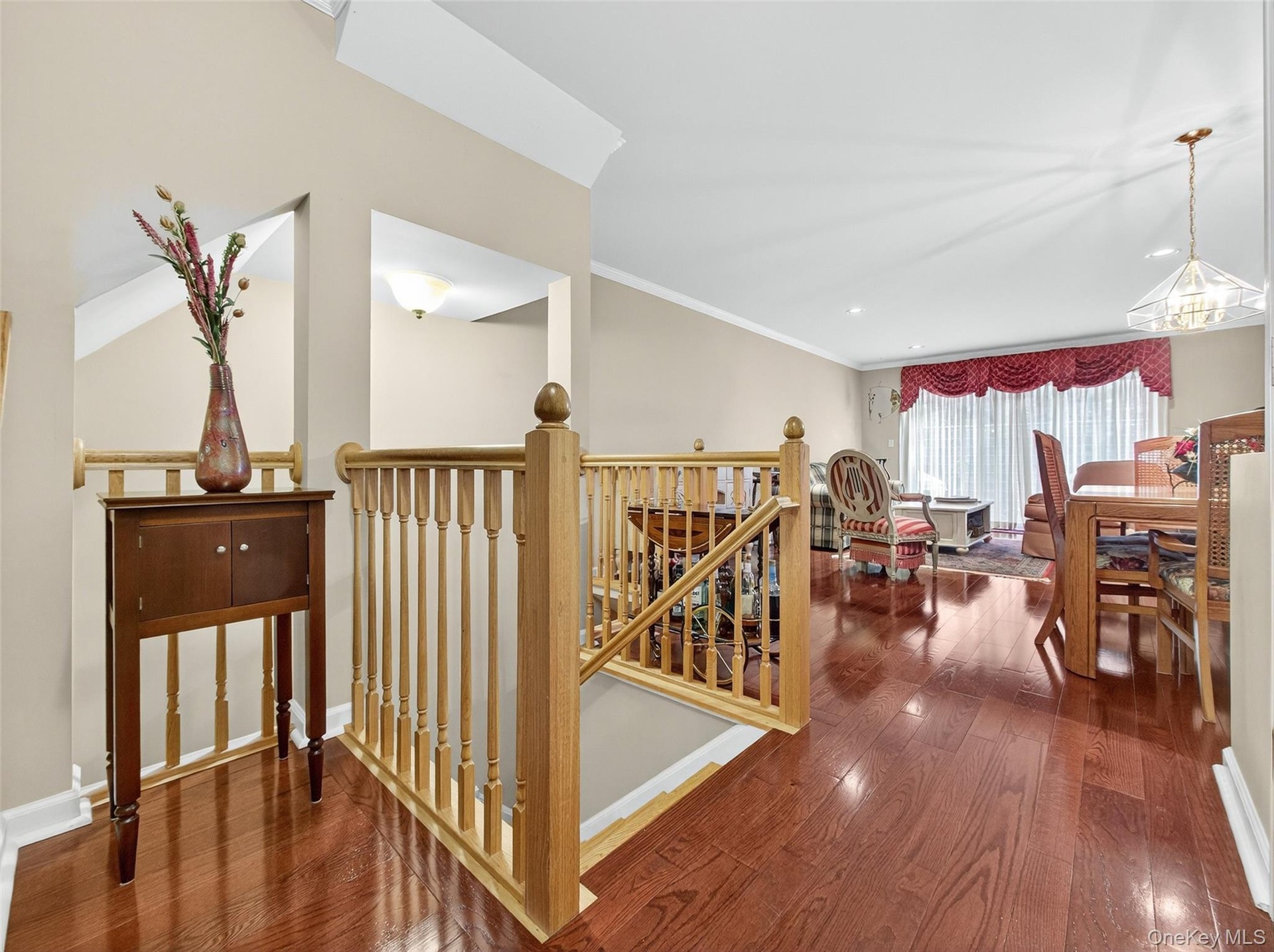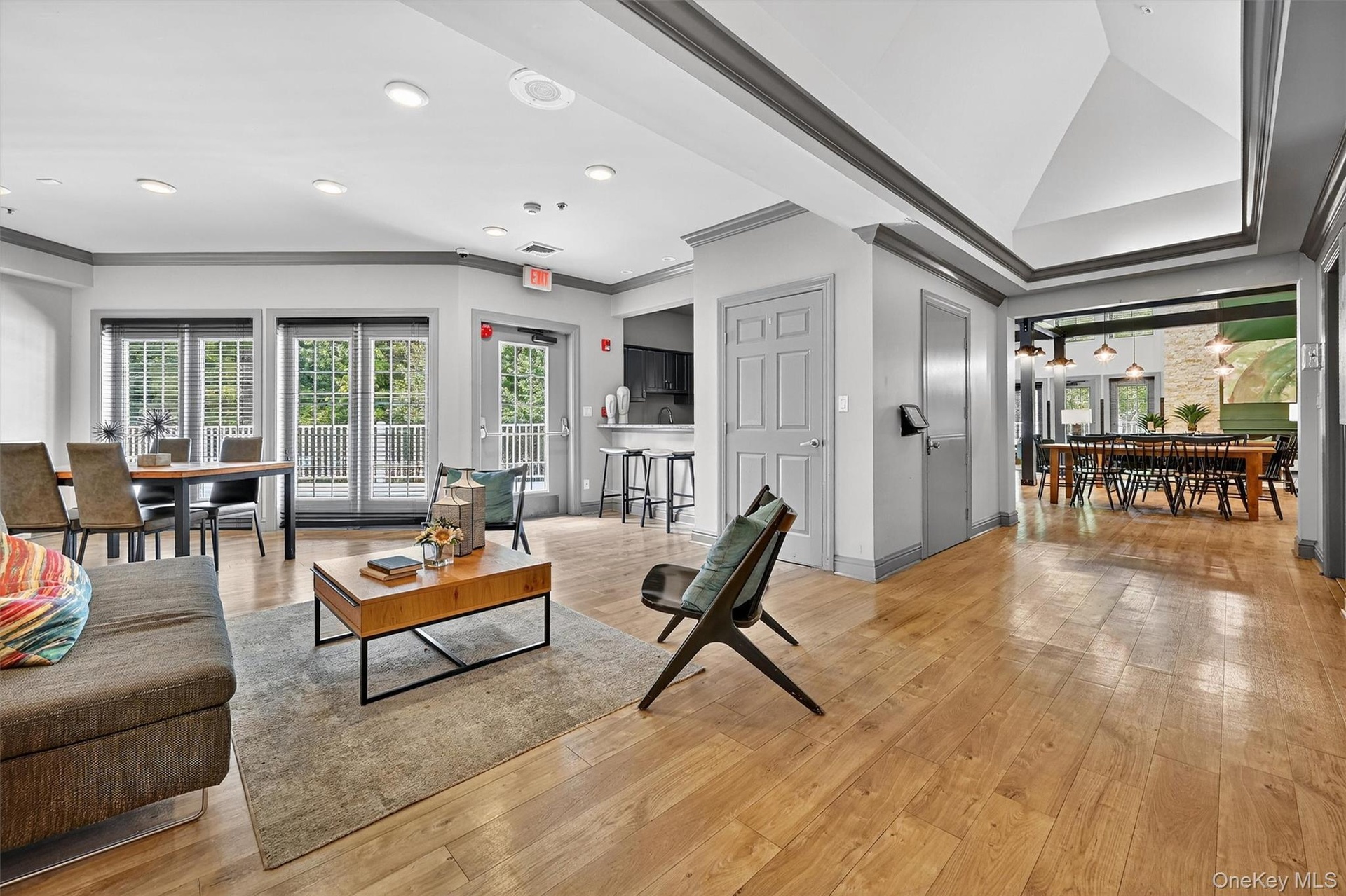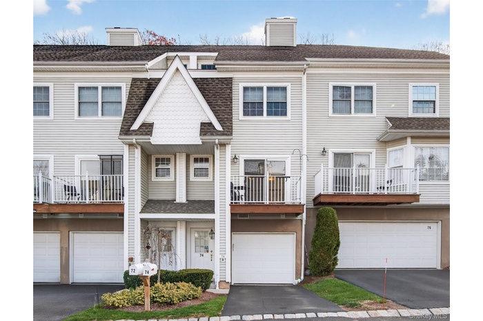 Welcome to effortless living in the highly sought-after Crystal Hill Club community. This sun-drenched 2-bedroom townhome, complete with a spacious loft and 2.5 baths, offers the perfect blend of comfort and style. The main level features an eat-in kitchen with sliders that lead out to a balcony, showcasing serene views of the Ramapo Mountains. Hardwood floors and crown molding run throughout the dining and living areas, creating an inviting setting for both everyday living and entertaining. With a second access point to the outdoors, the living room opens to a tranquil bluestone patio, an ideal spot to unwind. Upstairs, the large primary suite impresses with generous closet space and an ensuite bath with a jacuzzi tub. A second bedroom and full bath complete this level. The loft is a versatile bonus space, perfect for a home office, den, or cozy family room, enhanced by gorgeous views. The finished basement provides even more flexible living space, including a comfortable family room and a laundry/storage room. A one-car garage and driveway add everyday convenience. Thoughtful upgrades elevate the home, and include an expanded kitchen pantry, additional closets, an enlarged laundry room, enhanced garage storage, central vacuum, and a security system. A new energy-efficient furnace with four zones was added in 2025. The home also features a built-in humidifier, and a water softener system, adding optimal comfort and efficiency. Residents of Crystal Hill enjoy an exceptional array of amenities, which include a pool, clubhouse, fitness center, sports courts, BBQ/fire-pit area, and a playground. Ideally located close to shops, dining, train, bus, and ferry service to NYC, this home truly has it all. 74 Crystal Hill is the development’s only townhouse on the market...Don’t miss the opportunity to make this gem your own!
