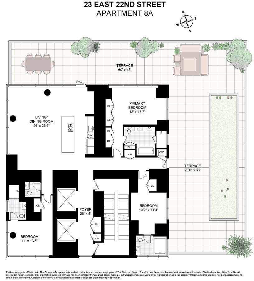 Experience one of the largest private, park-facing wraparound terraces in all of downtown Manhattan.