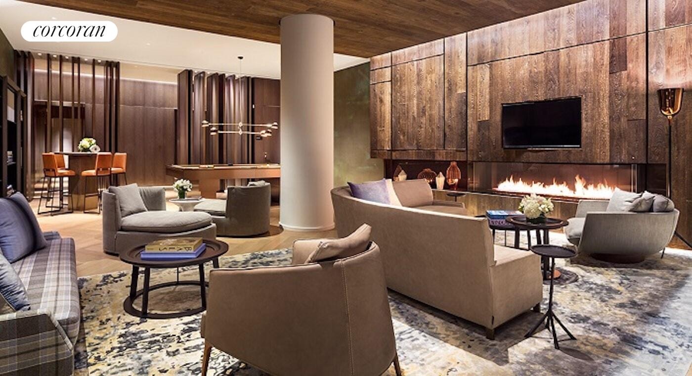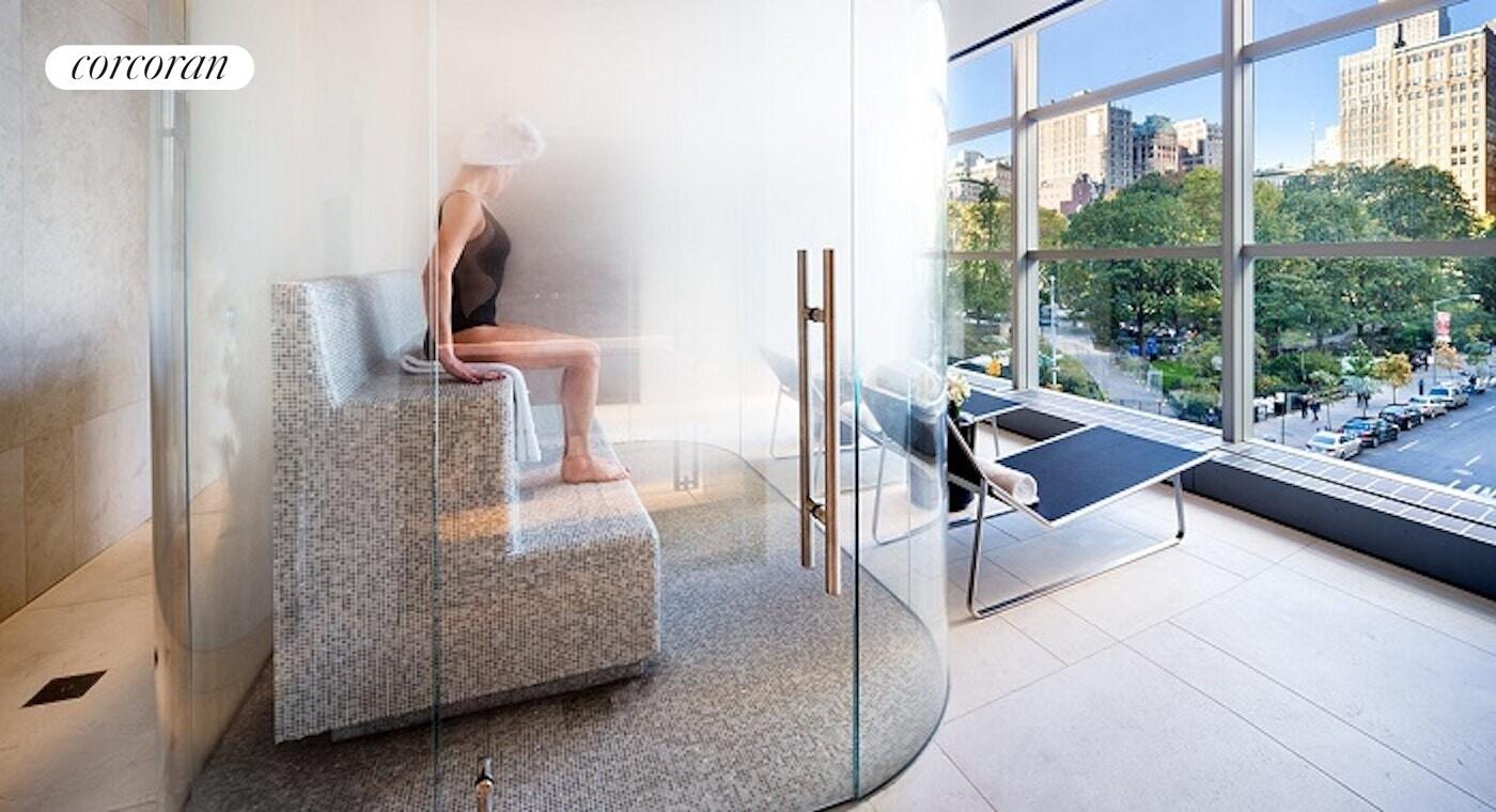 Residents enjoy the unmatched lifestyle of One Club at One Madison, a private, two-story, 10,000-square-foot amenity suite designed by Yabu Pushelberg. Curated for wellness and luxury, the amenities include a 24-hour doorman and concierge, a 50-foot heated indoor pool and spa with glass-enclosed steam room overlooking Madison Square Park, a children's playroom, yoga room, private movie room, state-of-the-art gym, residents' lounge, butler-served parlor with gas fireplace, recording studio, great room with dining space, and a staffed catering kitchen.