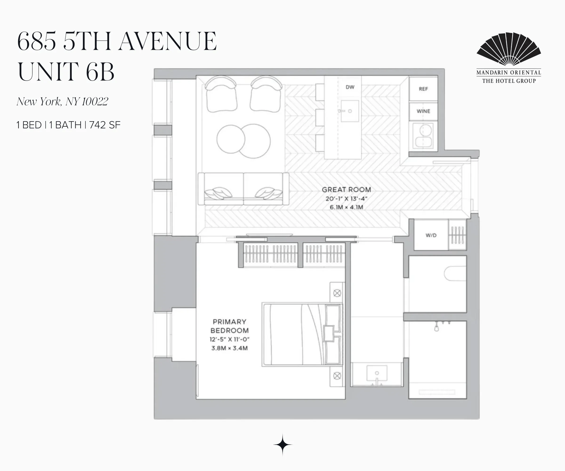 Welcome to an exquisitely furnished and impeccably appointed one-bedroom residence at the iconic Mandarin Oriental Private Residences on Fifth Avenue—a rare opportunity to own a turnkey home defined by artistry, craftsmanship, and five-star hospitality.
