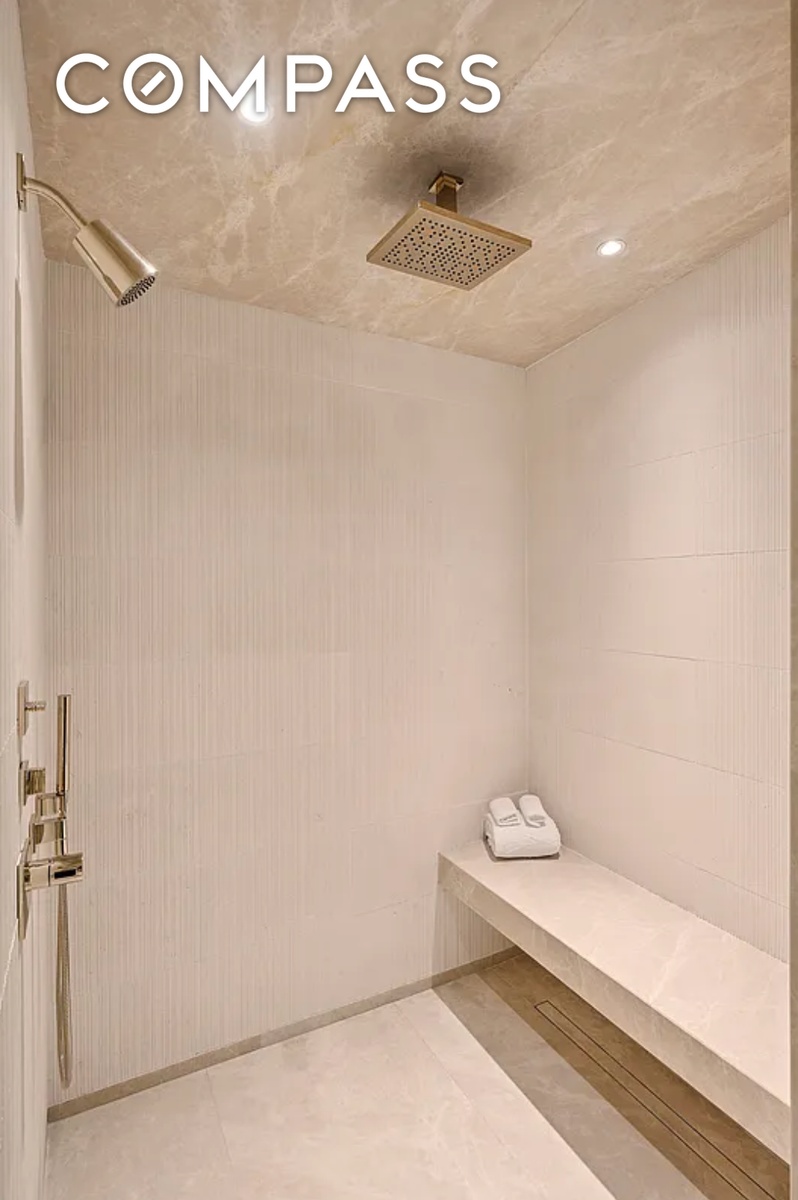 The serene bedroom is a private retreat, complete with Frette bedding, custom leather detailing, and exceptional storage. The spa-inspired bathroom features a limestone steam shower and plush hotel-level comforts. A washer/dryer and thoughtfully designed closets complete the home.