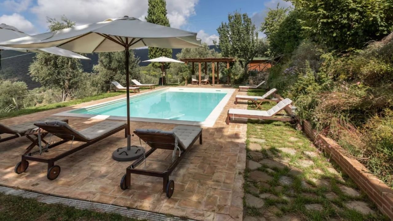 The 10x5 m swimming pool is perfectly positioned to offer enchanting views of the lake and surrounding olive groves, while the covered terrace and centuries-old trees provide shade during the hottest hours of the day.