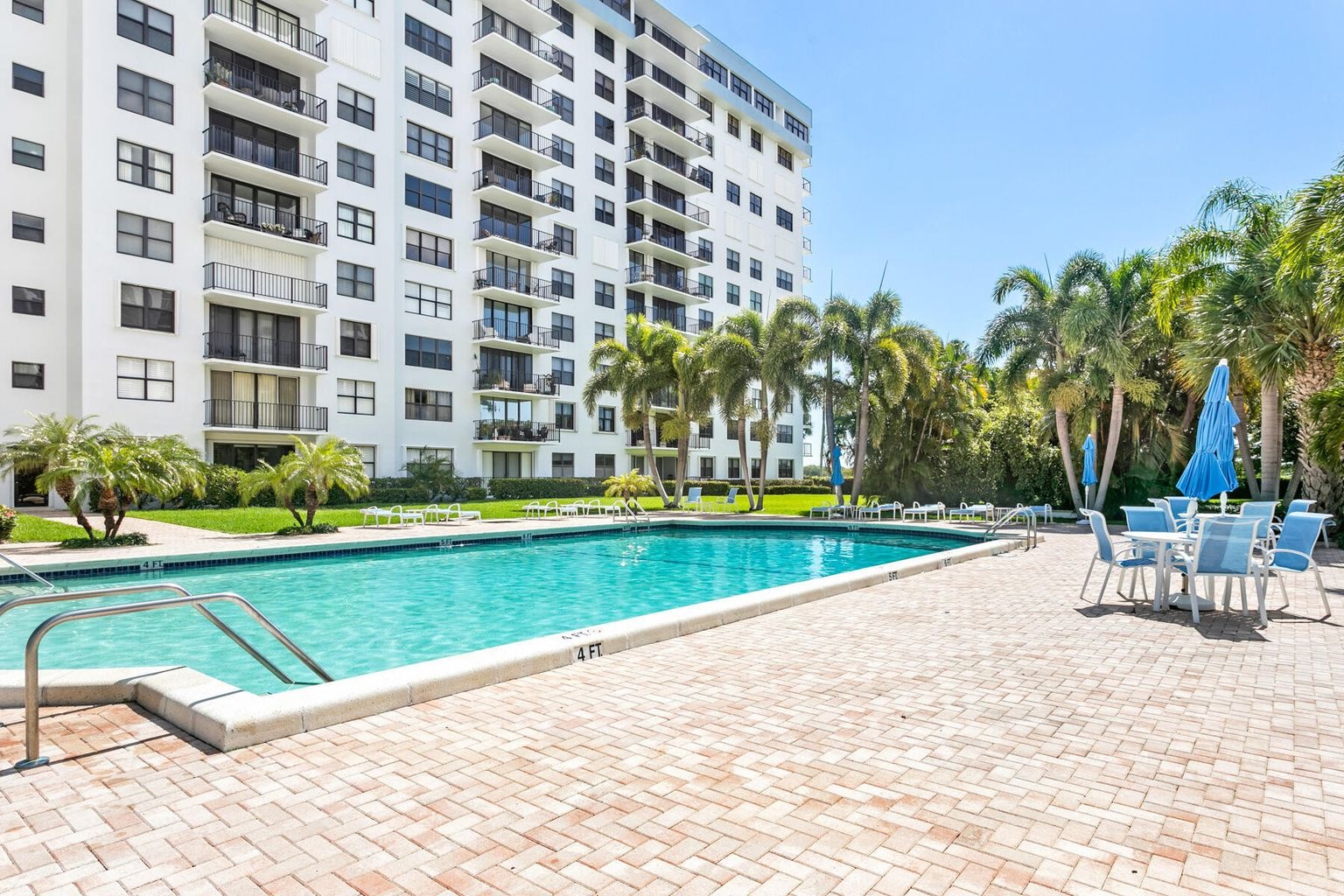 3BR2BA Corner unit on the 8th Floor in the Newly renovated Portofino South Condominium Building with large balcony overlooking Intracoastal, Palm Beach Island, Mar-A-Lago and the Ocean. Updated Kitchen and Bathrooms and marble floors. Located near I-95, PBI Airport, fantastic shopping and Dining and minutes from the ocean and beautiful beaches. Amenities include 24 hr doorman, FT on site Manager, large, heated pool, library, sauna, community/game room, bike room, storage, nice green spaces and day dock! Portofino South is Pet friendly, and HOA fee includes water, sewer, building insurance, internet, basic cable and onsite management