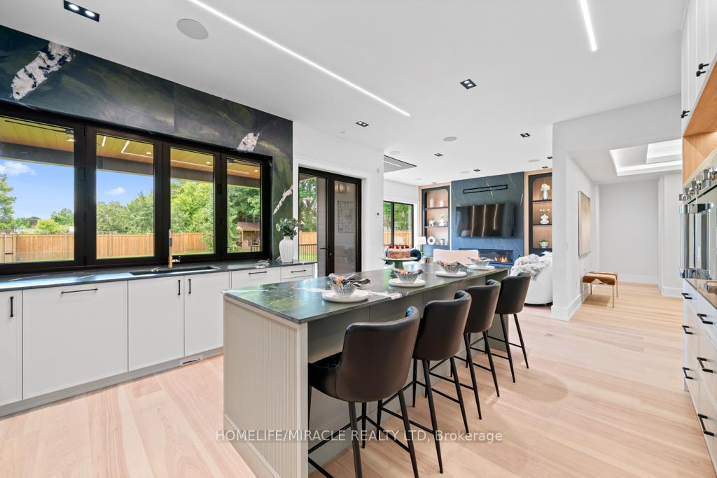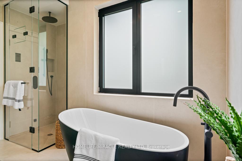 Built with architectural design by Keeren Design Inc. This newly completed luxury residence offers over 5,700 square feet of thoughtfully designed living space on a premium 62 x 173' lot in one of Oakville's most desirable neighbourhoods. Meticulously crafted with a focus on functionality and quality, the home blends classic architectural elegance with modern comfort. One-of-a-kind luxury residence in the heart of Central Oakville! This custom masterpiece offers over 5,700 sq ft of meticulously finished living space. Featuring total of 6 spacious bedrooms, 8 baths, radiant heated curbless washrooms, 10' ceilings on the main floor, 9' ceilings on the upper, and smart home automation via Control4. The chef's kitchen includes Thermador appliances, Avocatus leathered quartzite countertops, and custom cabinetry. Enjoy a bi-fold kitchen window opening to a private heated patio with Urbana fireplace and sleek glass privacy panels. Fully finished basement with home theatre, gym, and California-inspired infrared sauna. Heated driveway, Rinox stone + Rialux siding, both Canadian quality, tilt & turn European windows, custom lighting, in-ceiling speakers, and more! Located on a quiet street, close to top private & public schools, parks, Transits, Highways, Malls, Downtown and the lake. Upstairs, all four bedrooms offer walk-in closets, with the primary suite delivering a spa-inspired ensuite including a curbless steam shower, wall-hung toilet, freestanding tub, radiant floor heating, Krater Perla porcelain slabs, and a custom 9 double vanity. The fully finished basement is an entertainer's dream complete with a 140" screen home theatre, 7.1 speaker system, yoga/gym room, California-style infrared sauna, and rough-ins for both a wine cellar and entertainment bar.