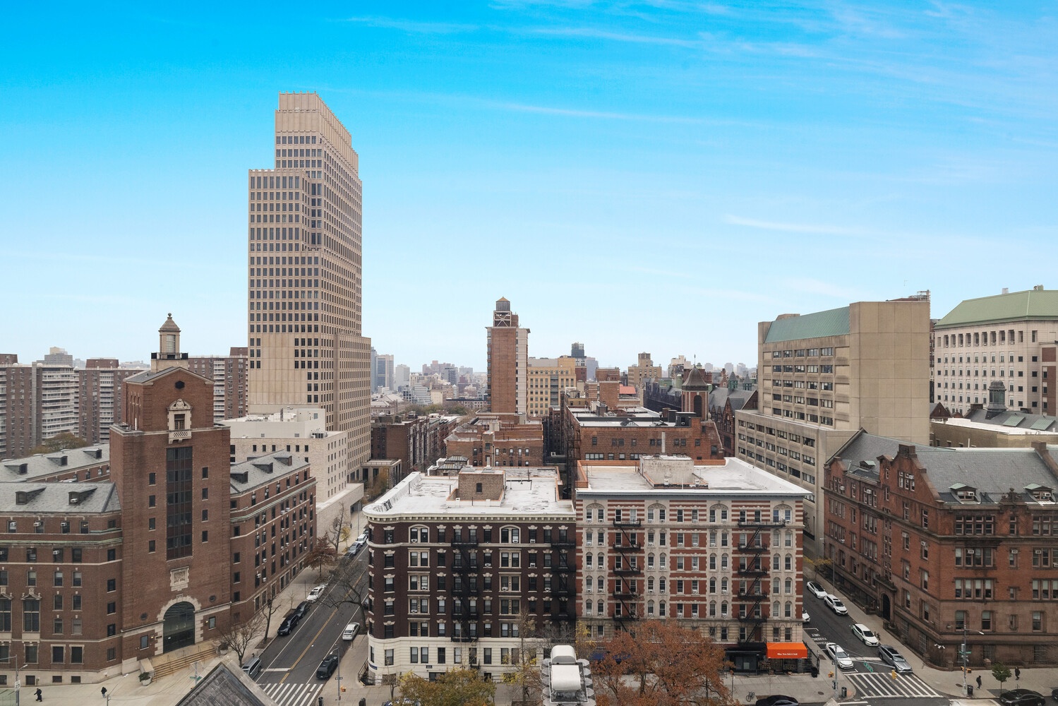 Facing north and east with views over Sakura Park, Riverside Park, and Grant's Tomb, 12E, a corner two-bedroom, two-bathroom home includes a gracious foyer, an open-concept living and dining room, and a stylish kitchen with island and paneled wine refrigerator. The primary bedroom features an en-suite bath, a walk-in closet, and a three-panel oversized window that frames eastern sunrise views. A secondary bedroom boasts corner exposure, with views to the north and east.
