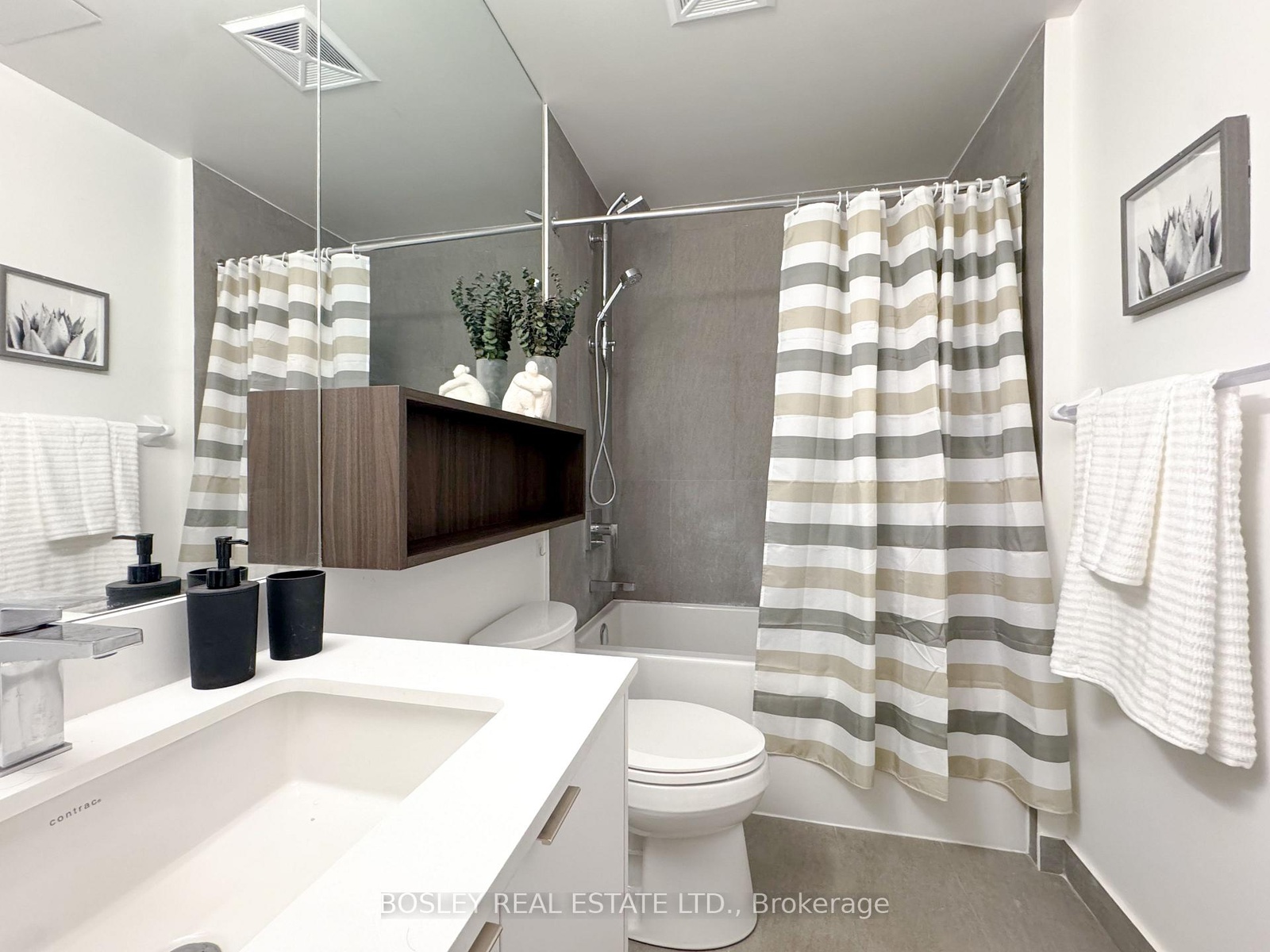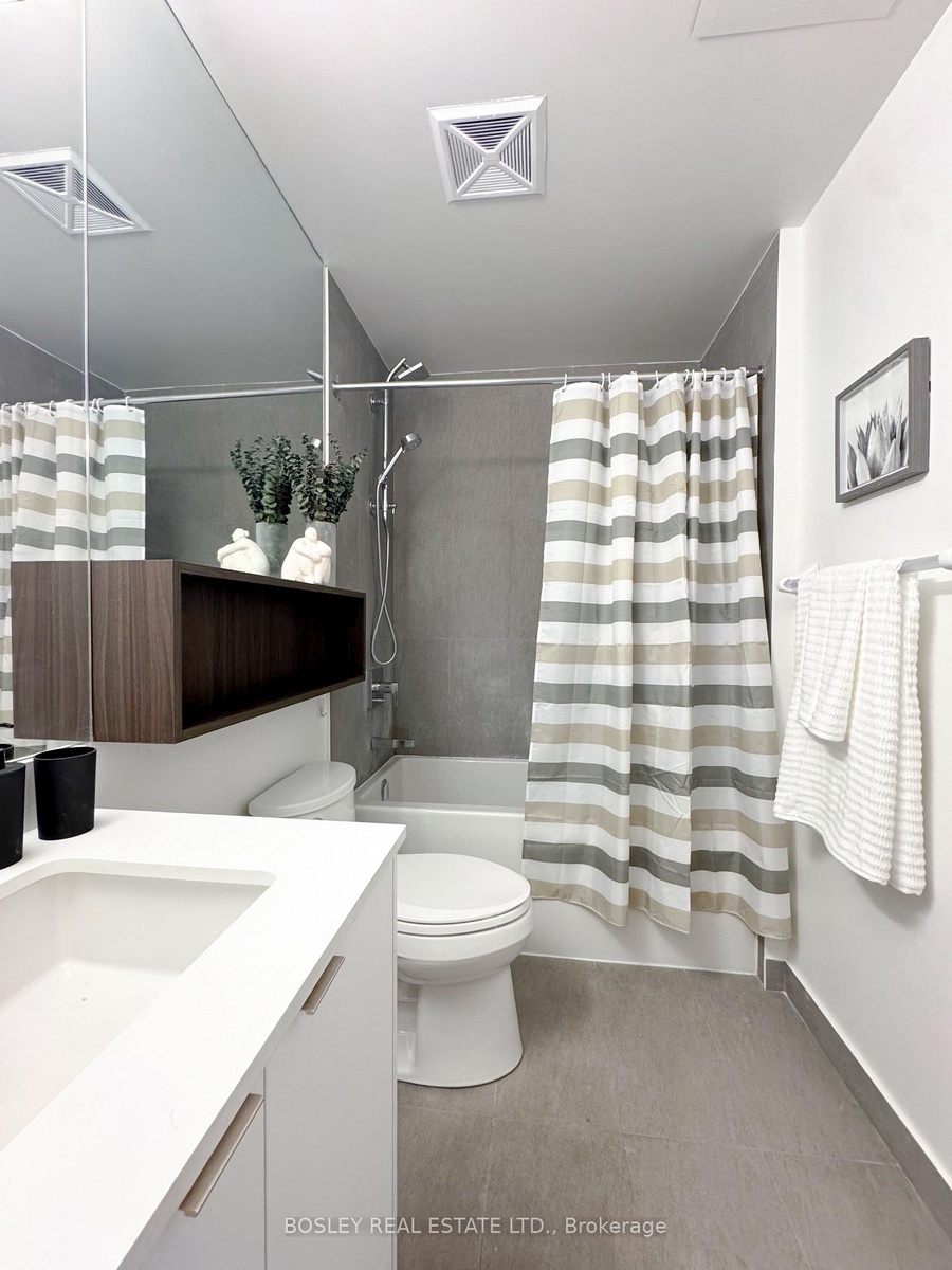 Where connection and style meet - welcome to THE SOCIAL. This fully furnished one-bedroom plus den (large enough to serve as a 2nd bedroom!) suite offers the complete urban experience, paired with sleek modern design and curated comfort. Every piece, curated from the likes of West Elm, EQ3 and Home Société, has been chosen to reflect refined taste and practical elegance, ideal for the discerning downtown professional. Set on a mid-high floor, the suite features a thoughtfully efficient layout with light grey plank flooring, a minimalist kitchen, and a contemporary spa-inspired bath. Step onto the suite-wide balcony to take in breezy west and southwest views of the city skyline - the perfect backdrop to unwind or entertain. The lease includes 1 parking (a rare luxury!) and access to an impressive array of building amenities: a state-of-the-art fitness centre with weights, spin, yoga, and pilates zones; a soaring 52nd-floor multimedia lounge with study spaces, billiards, and entertainment areas; and a rooftop terrace with dining zones and a tanning deck. A 24-hour concierge and swift elevator system ensure convenience throughout the day. All this just steps from Metropolitan University, the Eaton Centre, top theatres, dining, and nightlife - a central address for those who thrive on connection, creativity, and contemporary comfort.